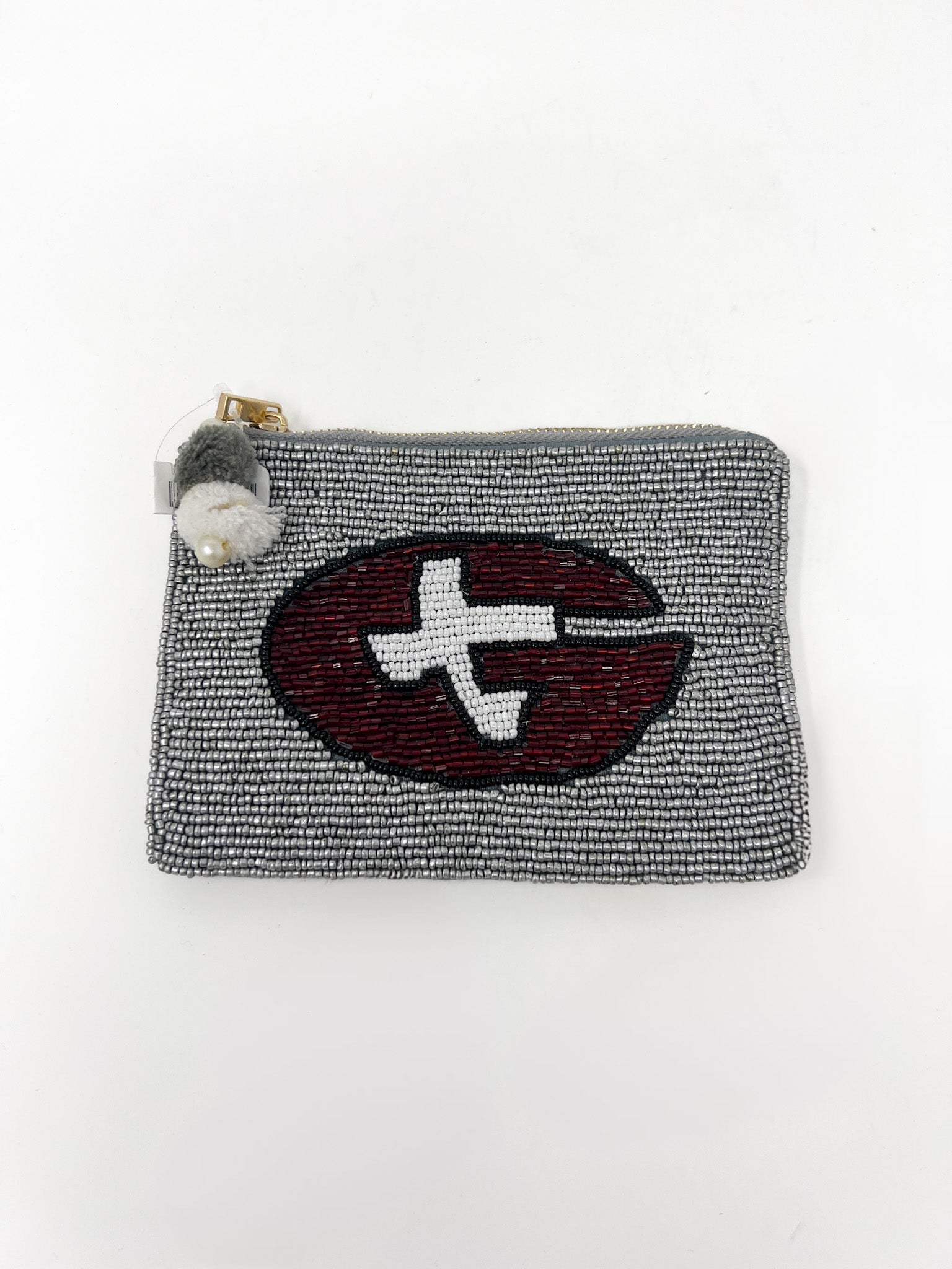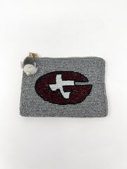 Rep your Garrison pride with this maroon and grey beaded coin purse, featuring the official school logo front and center. Hand-beaded with school spirit in every stitch, it’s the perfect size to carry your game-day cash, cards, or lip gloss. A must-have for Bulldogs fans who love a little sparkle with their school spirit!