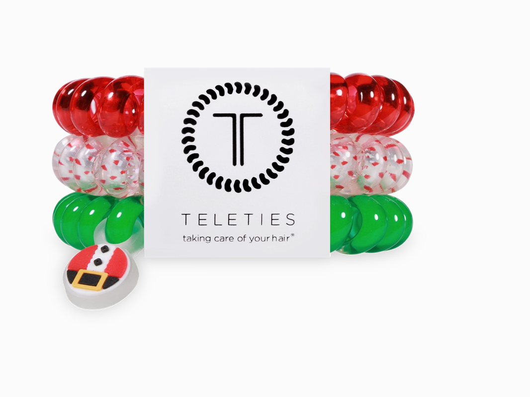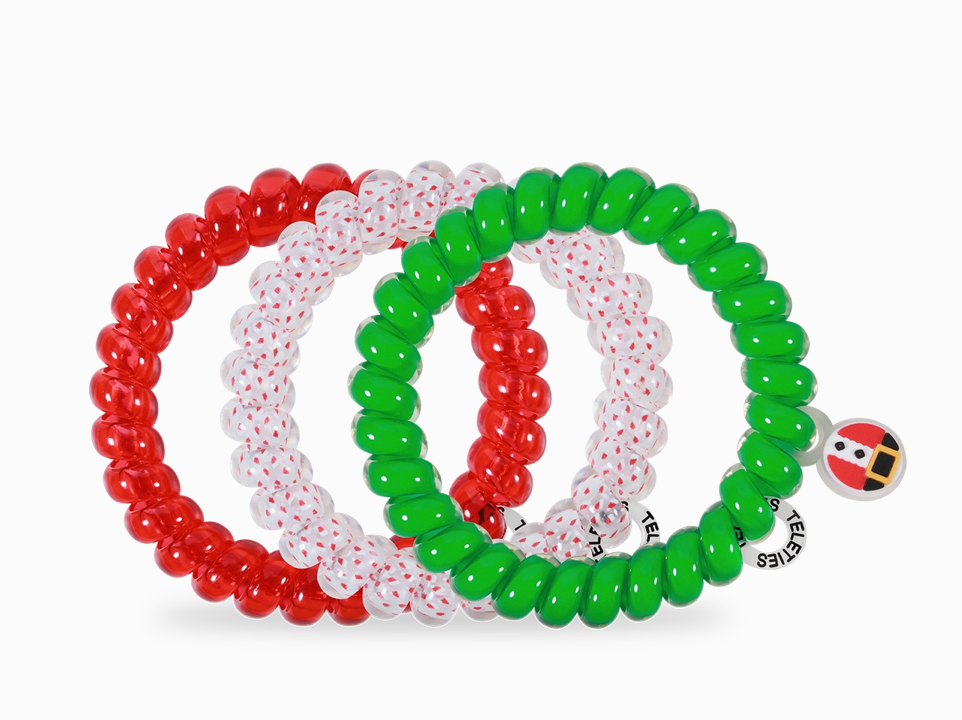 Naughty or Nice Large Hair Ties in Red and Green offer a strong grip without damage, doubling as a chic wrist accessory when not in use. Your new favorite hair essentials all year round.