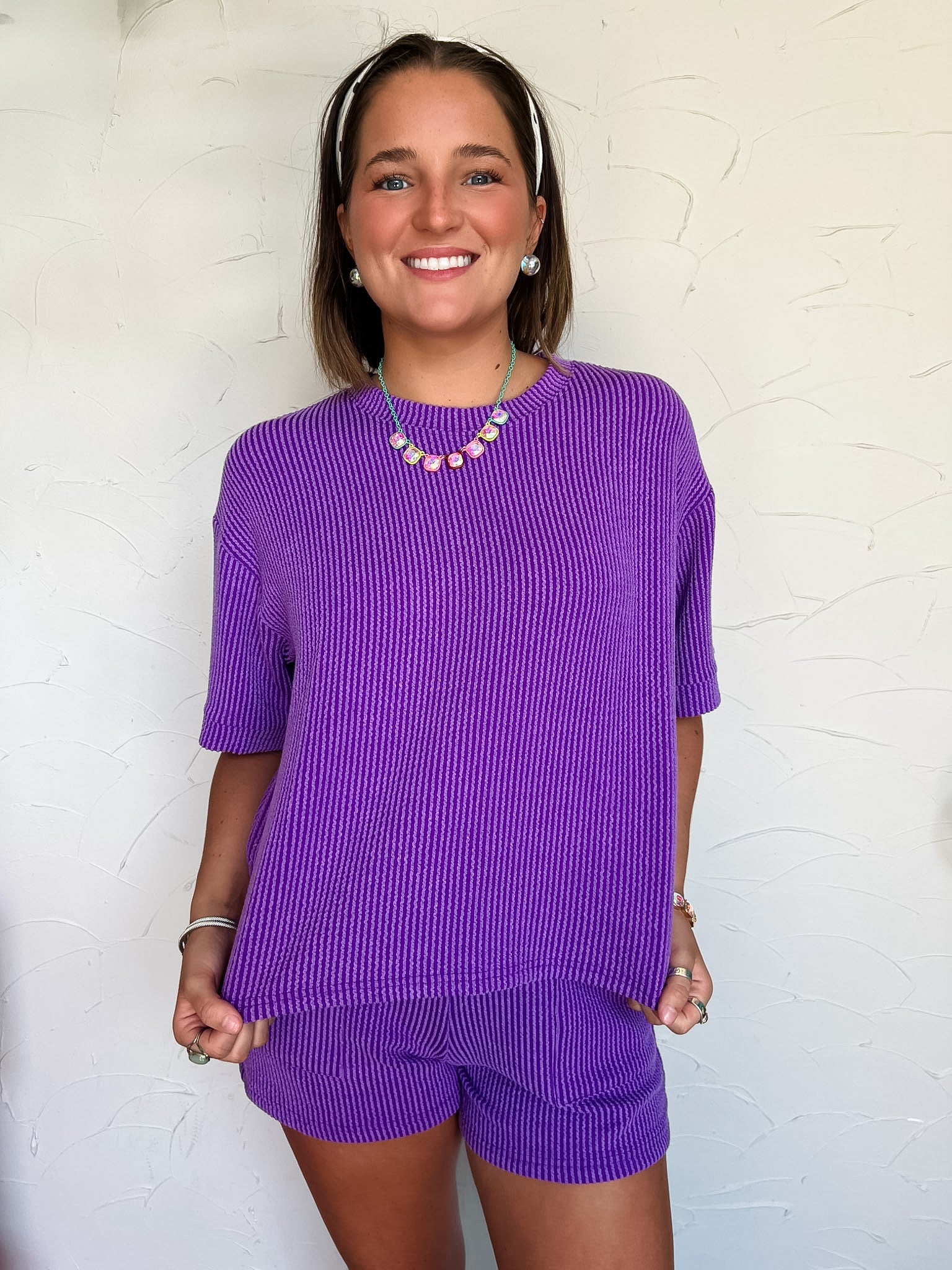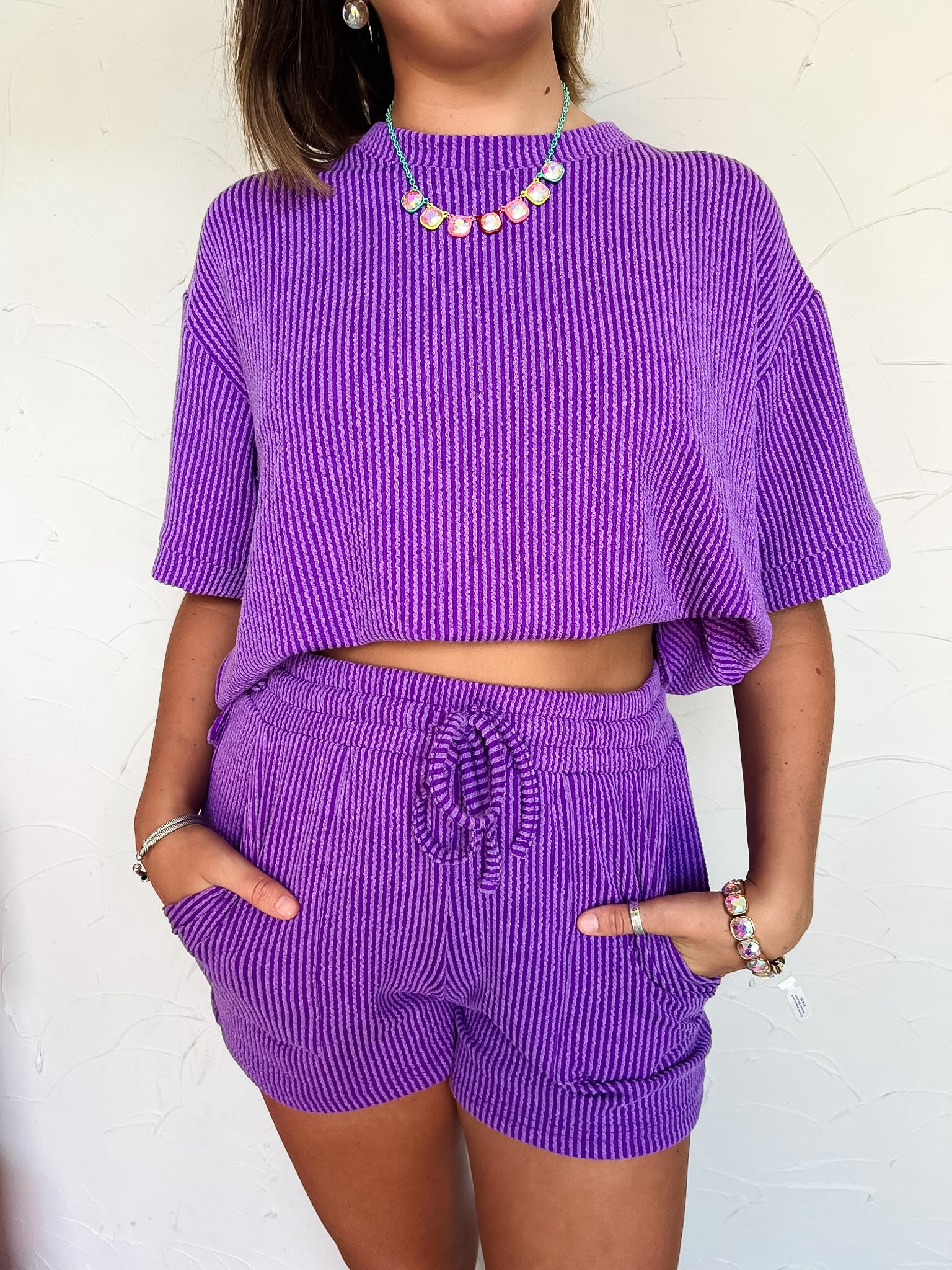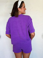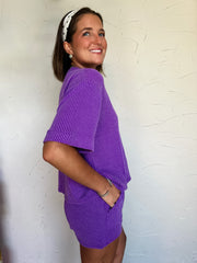 Never Leaving Corded Short Sleeve Set- Purple