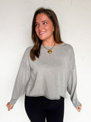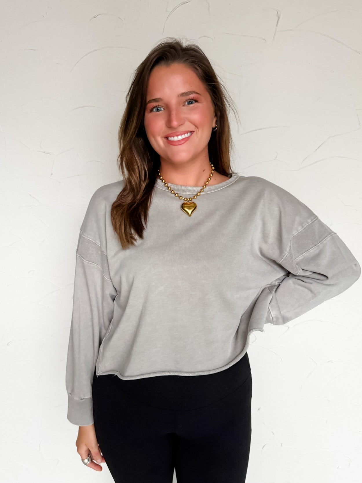 The Reason Why Mineral Wash Cutout Sweatshirt- Grey