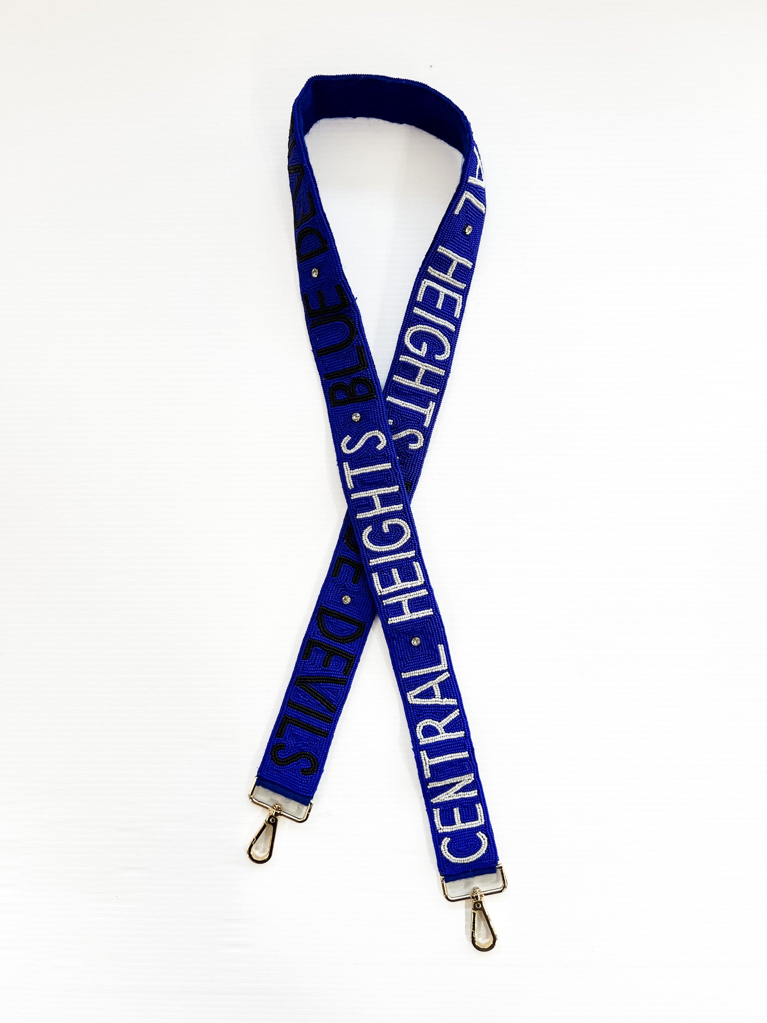 Rep your Blue Devil pride with this bold beaded strap in classic blue and white. Accented with sparkling details and gold hardware, it’s the perfect game day accessory for every Central Heights fan.