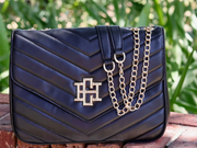 The Mia Crossbody Bag in Black VQ features a chic v-quilted design accented by a bold CH logo, perfect for elevating any outfit. Its versatile chain strap can be styled in two ways for day-to-night wear. Inside, a zippered divider and a dedicated cell phone pocket keep your essentials organized and accessible without sacrificing style.