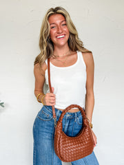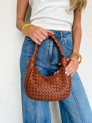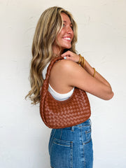 Laken Woven Shoulder Bag Crossbody- Light Chocolate
