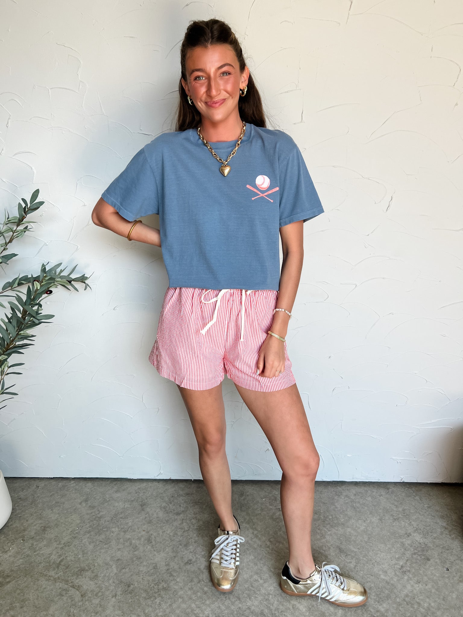 Styled With: Our Feeling Your Best Striped Drawstring Shorts- Red & Stevie Sneaker- Light Gold