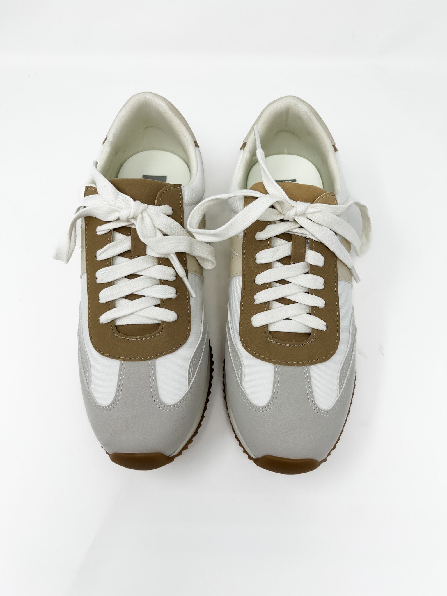 Classic low-top sneakers in a neutral color palette with suede and leather detailing. Designed with a cushioned sole and lace-up closure for all-day comfort. A versatile sneaker that works with casual, sporty, or elevated off-duty looks.