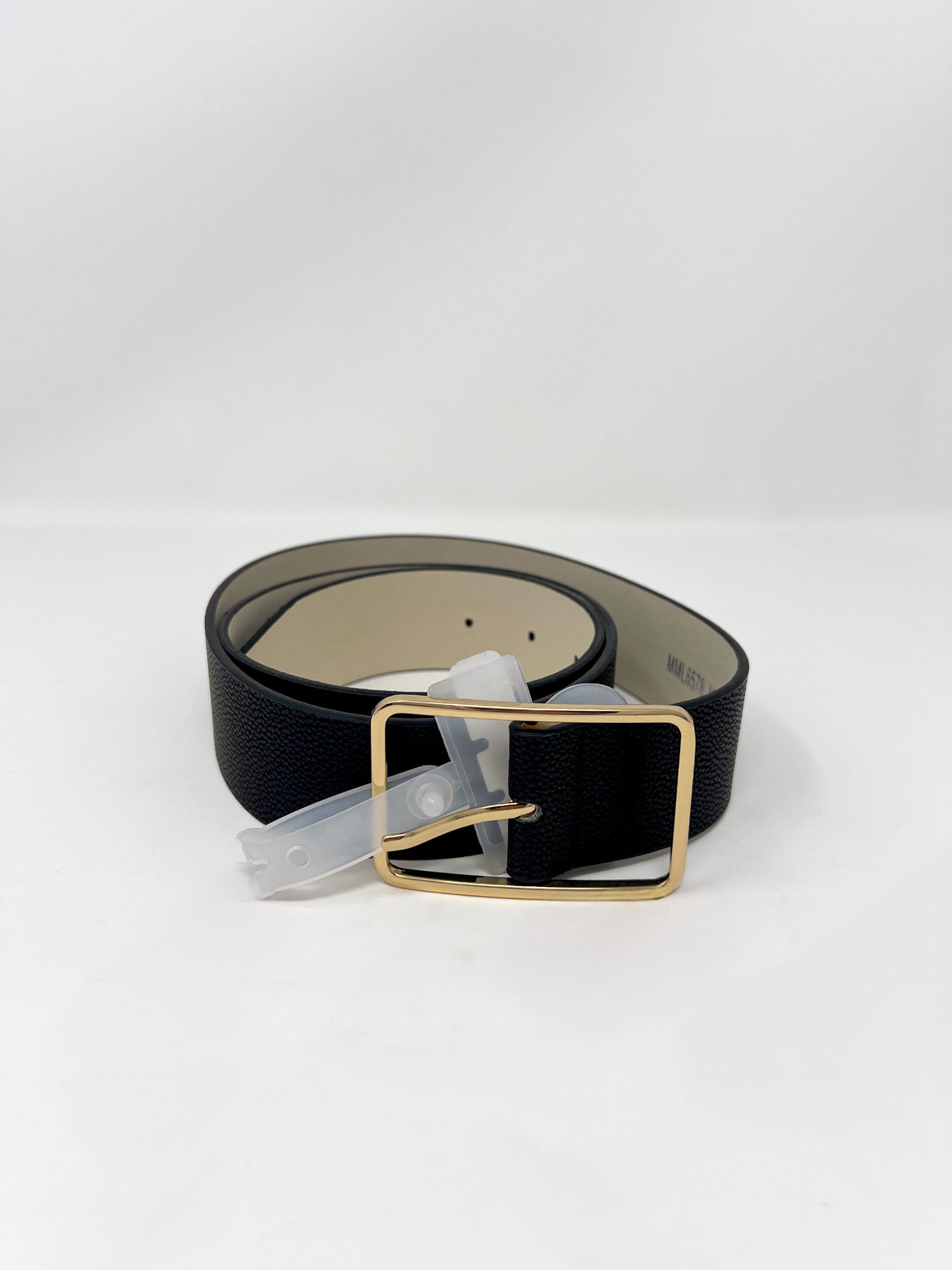 Bold and timeless, this thick black belt makes a statement. Featuring a structured silhouette and a modern rectangle gold buckle, it’s the perfect piece to define your waist and elevate any outfit. Ideal for layering over dresses, blazers, or high-waisted denim.