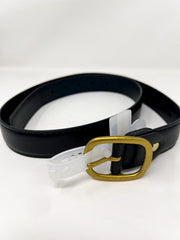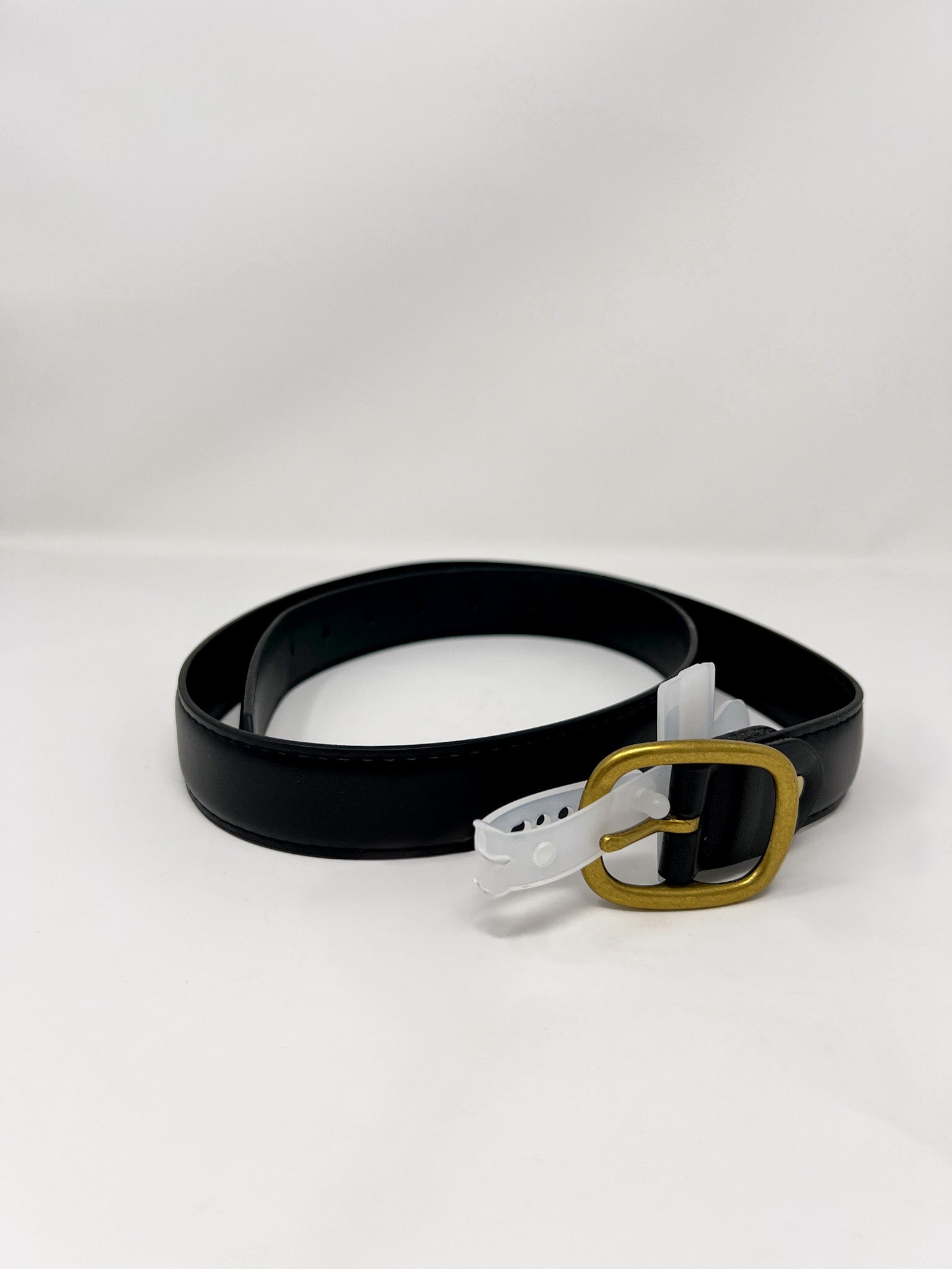 Sleek and sophisticated, this thin black belt is the perfect finishing touch. The slim silhouette flatters your figure, while the oval gold buckle adds just the right amount of shine. Whether you're dressing up trousers or cinching a dress, it’s a must-have staple.