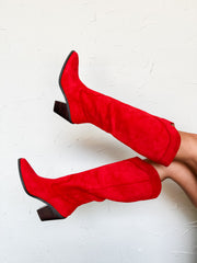 All eyes on you! These vibrant red suede boots bring instant confidence and glam to any outfit. Soft, bold, and effortlessly chic—pair them with denim or a dress for a show-stopping look.