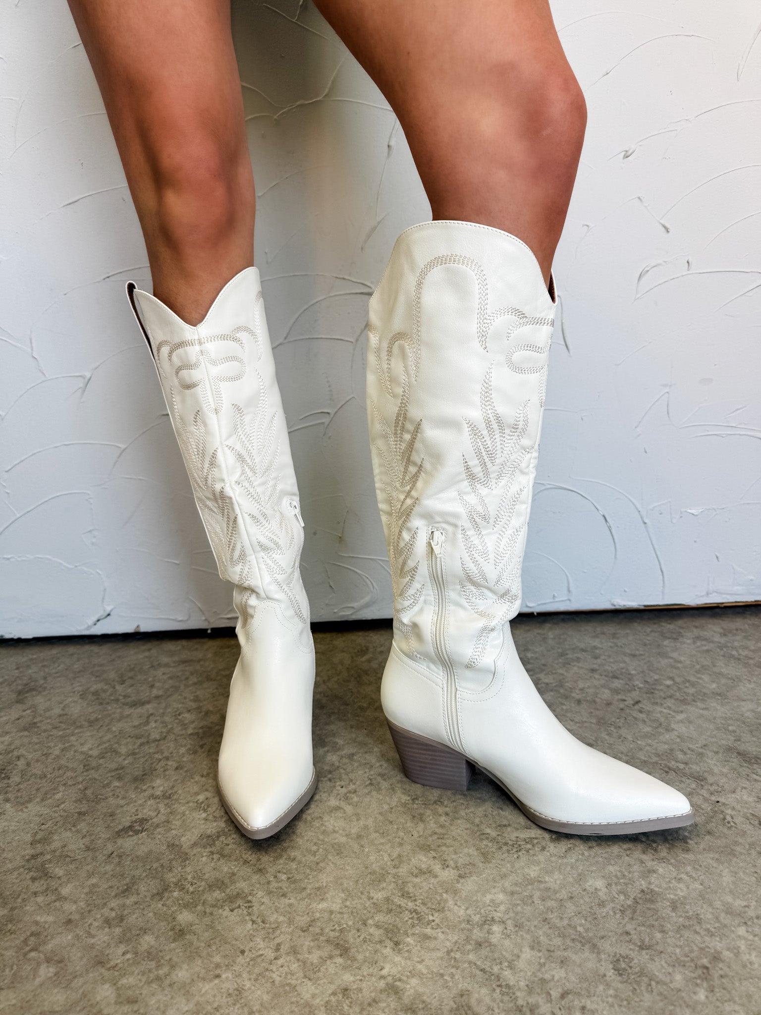 Meet our Samara Boots! Featuring pull tabs, a pointed toe and classic embroidery detailing. Plus, unique flair of a classic western design. A solid grey heel adds sturdiness to every step, while the padded footbed guarantees all day comfort! These are a must have for sure! Grab them while you still can sis!