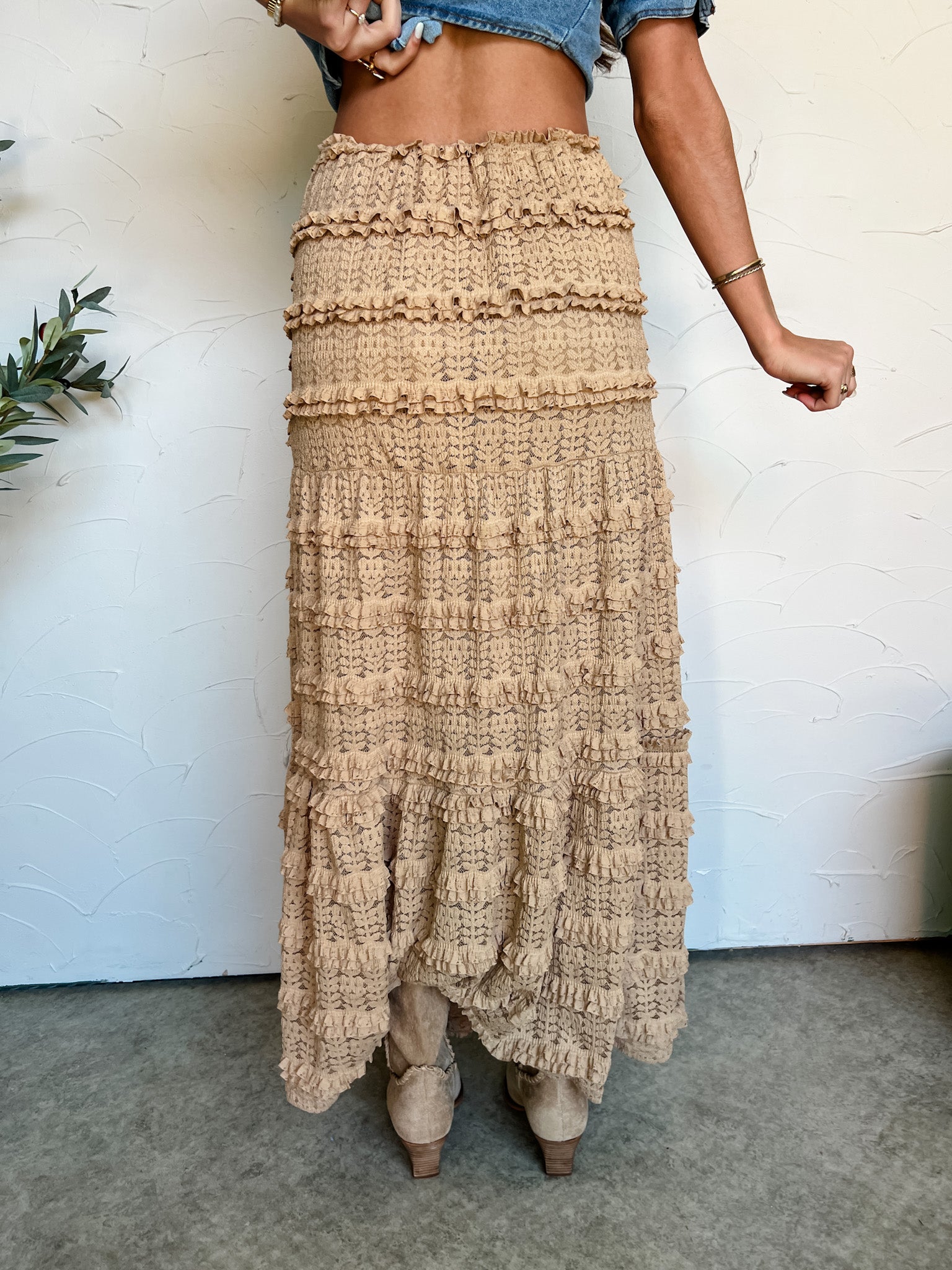 Lovely Moments Layered Lace Midi Skirt- Mocha