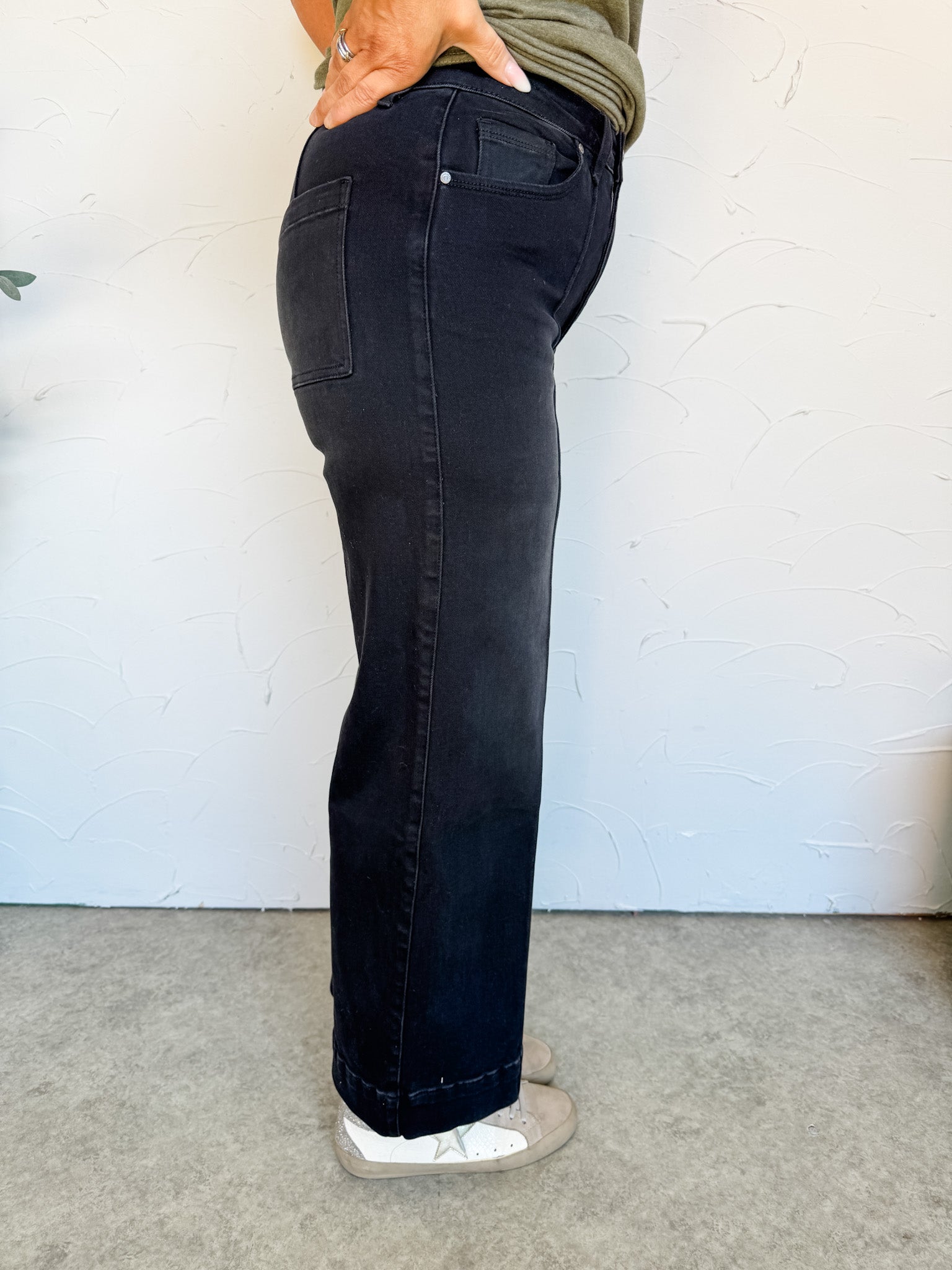 Prettiest Wish High Rise Wide Leg Jeans- Black Denim