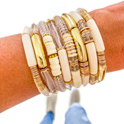 {SB} Ivory Acrylic Tube Bamboo Bracelet Set (8pc)