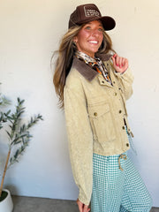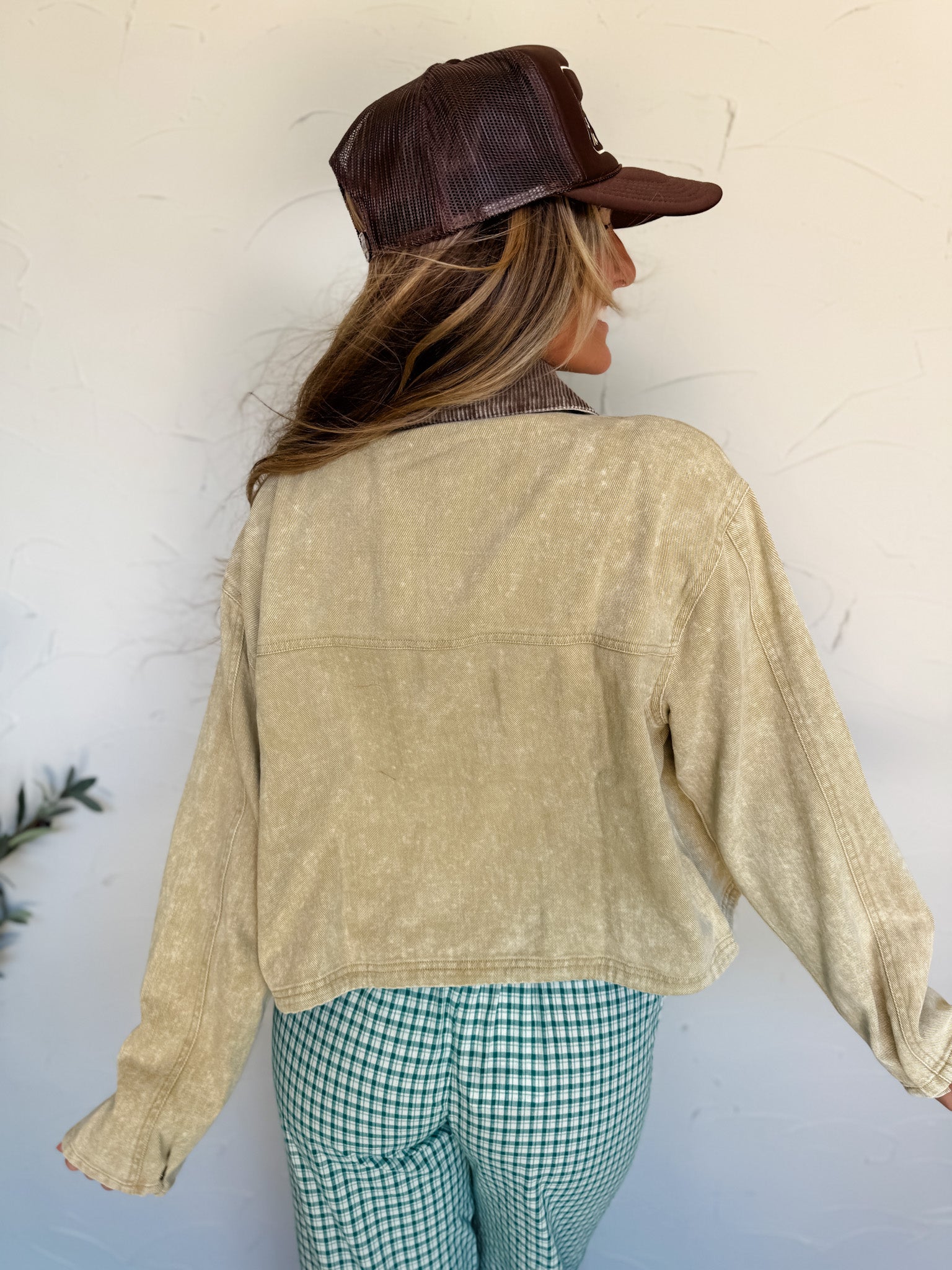 Work From Home Corduroy Twill Crop Jacket- Sand