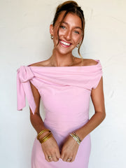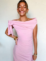 Be My Guest One Shoulder Midi Dress- Pink