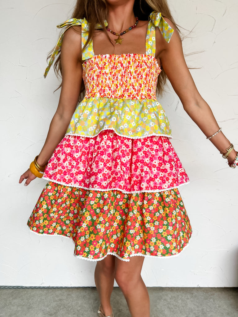 Chillin' With My Peeps Multicolor Floral Tiered Mini Dress