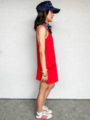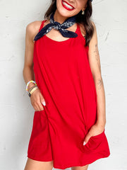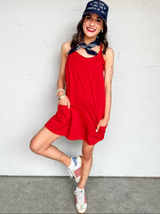 It's The Little Things Romper Lined Dress- Ruby