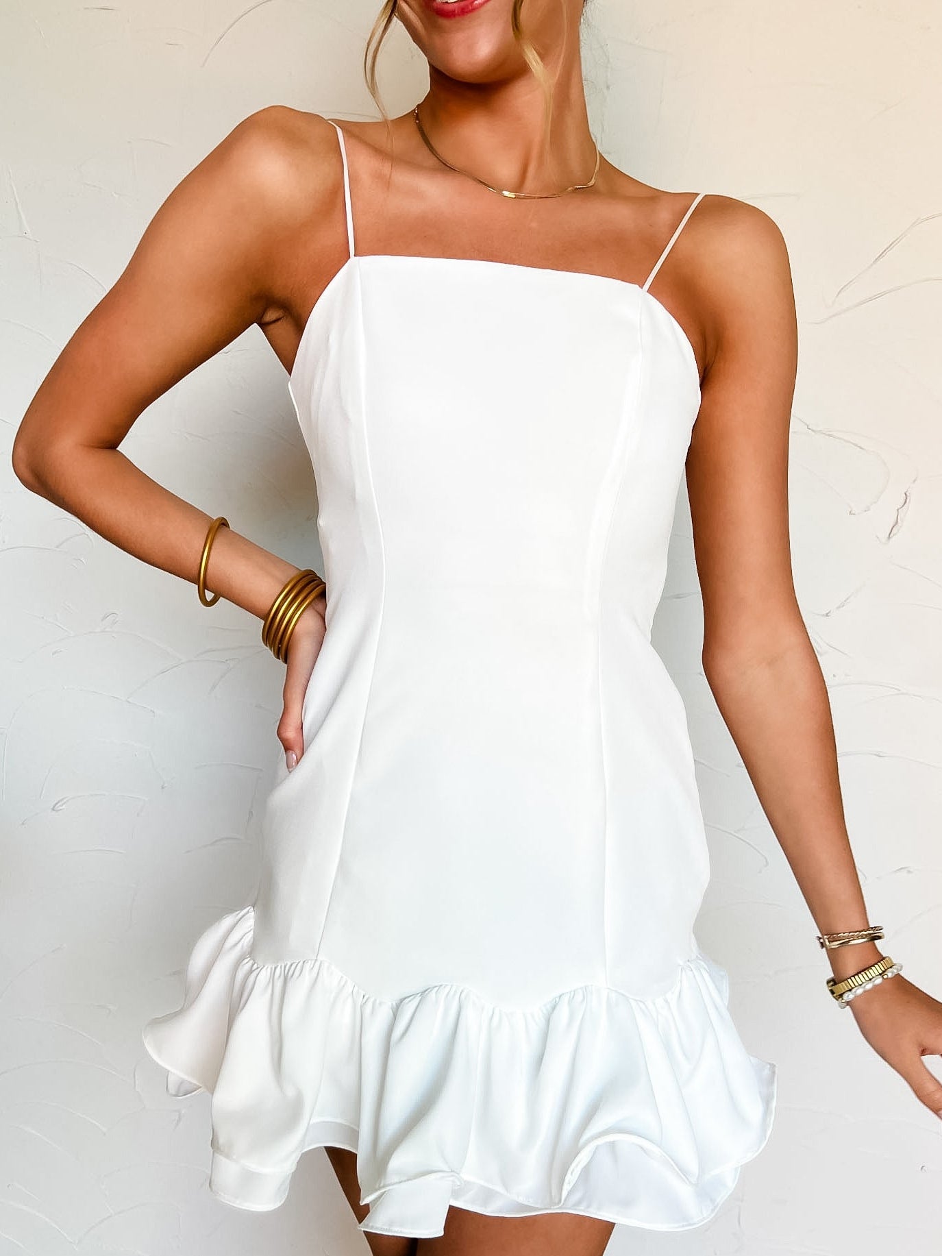 Just For The Moment Fitted Ruffle Hem Dress