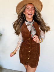 Main Attraction Bow Detailed Corduroy Mini Dress