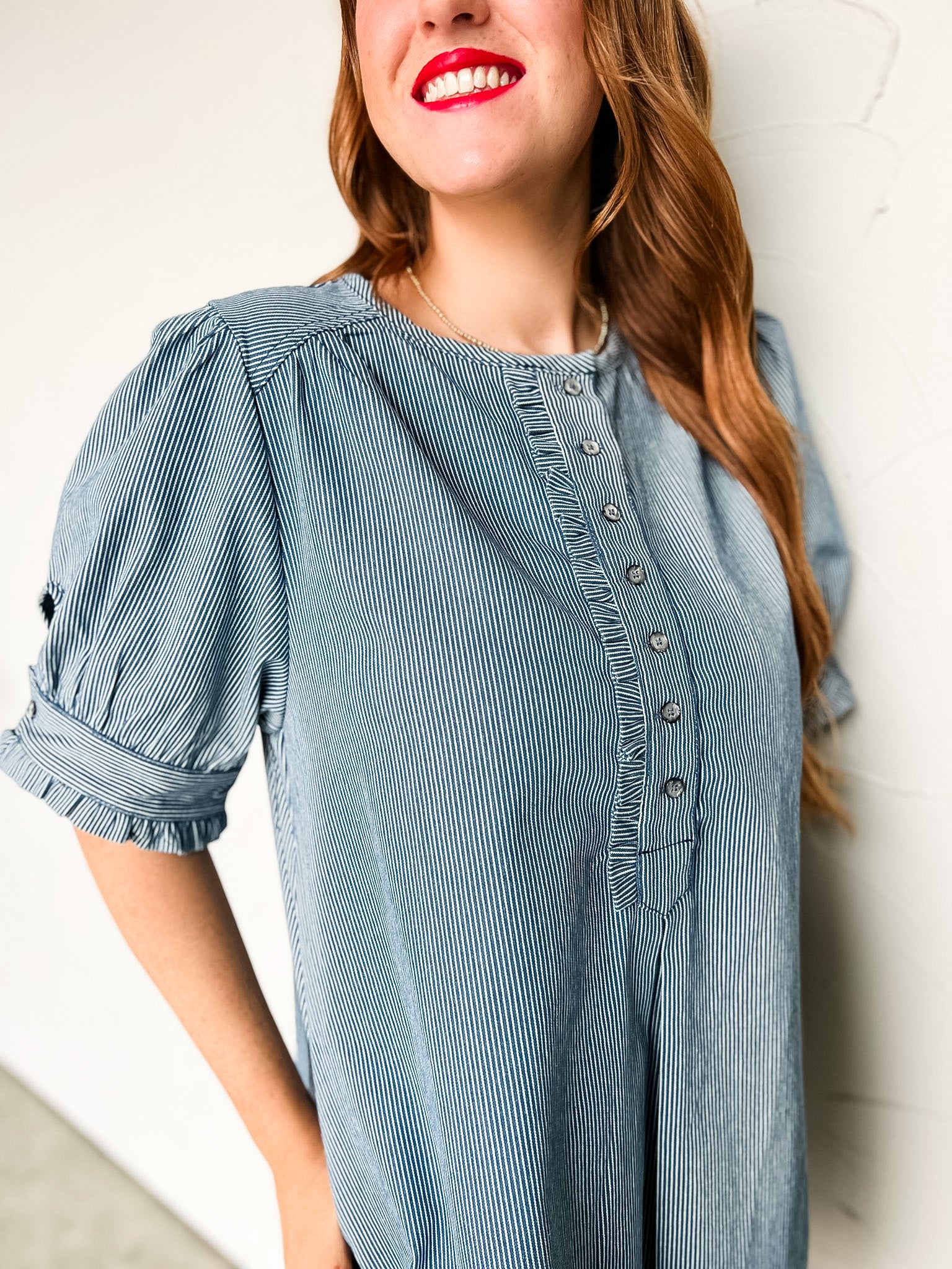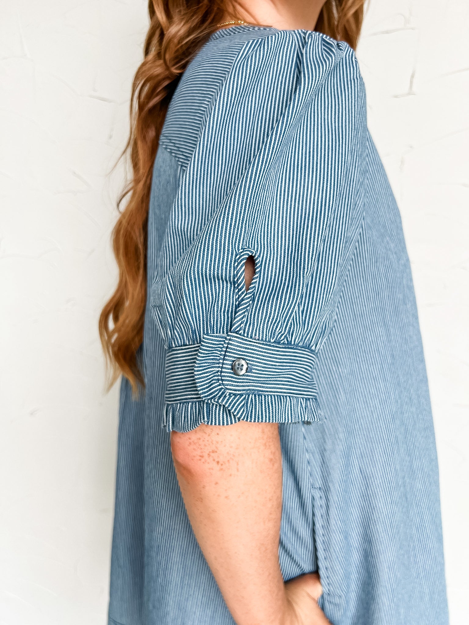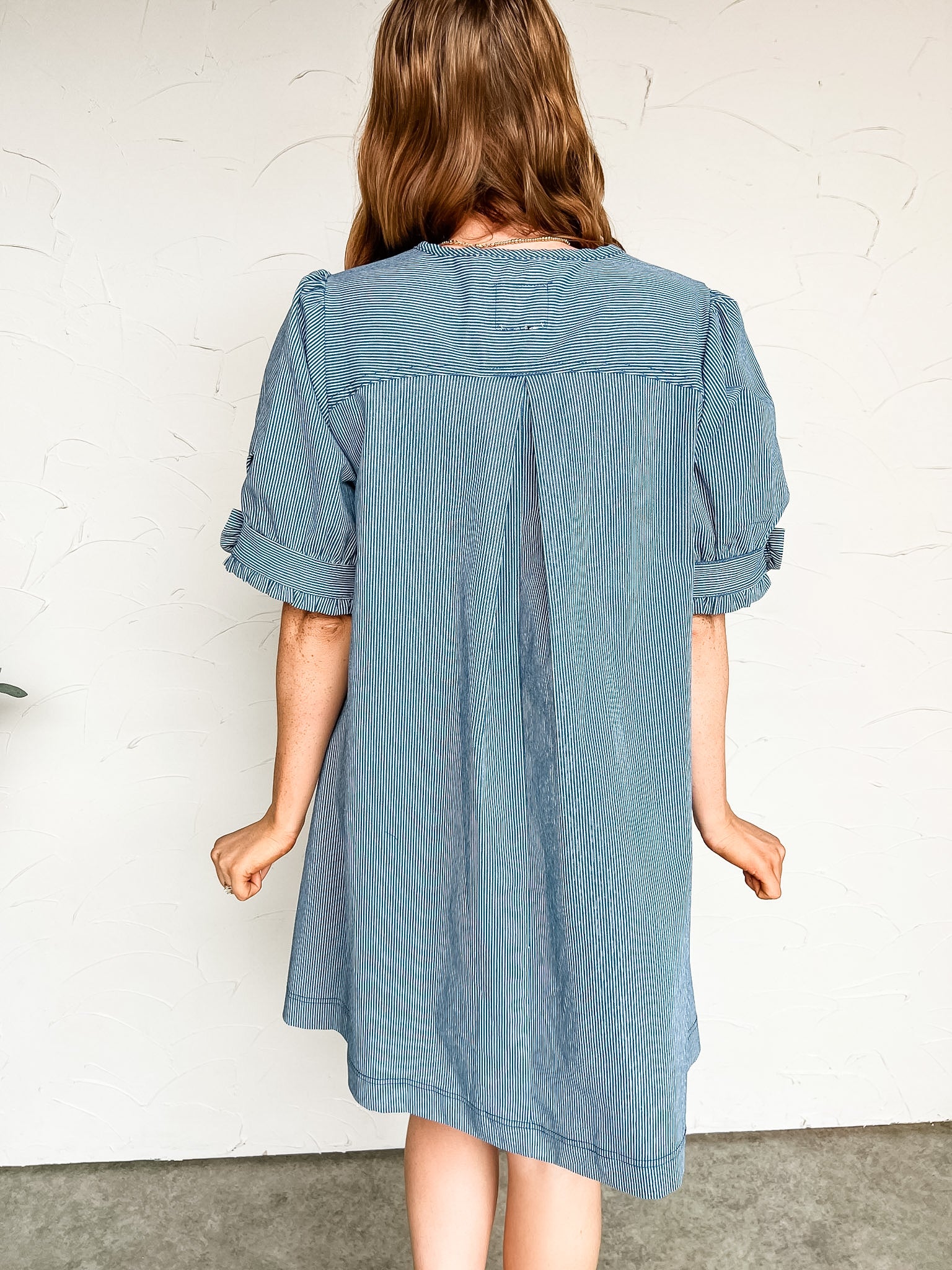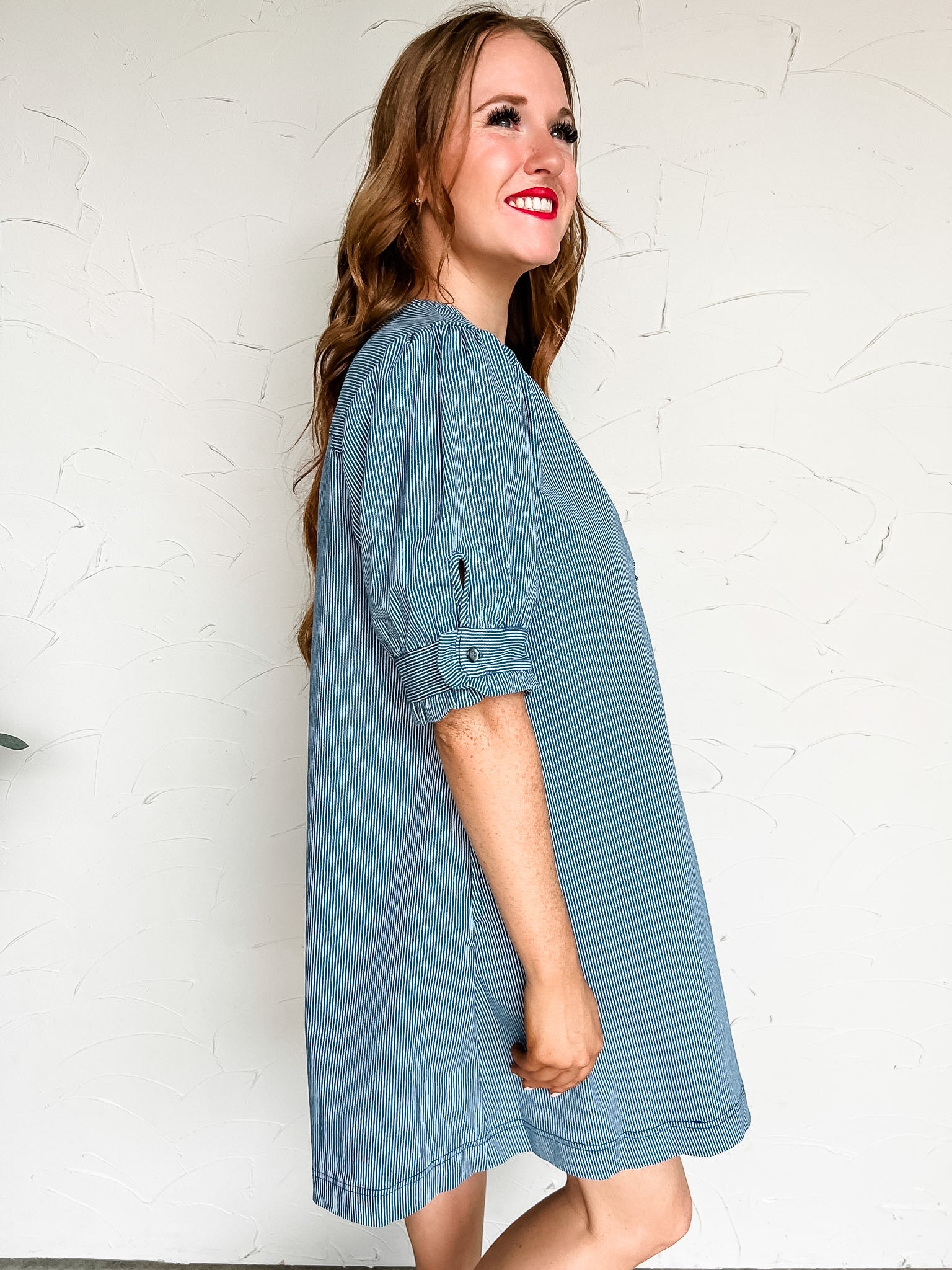 Make Your Life Easy Striped Denim Dress- Medium Wash