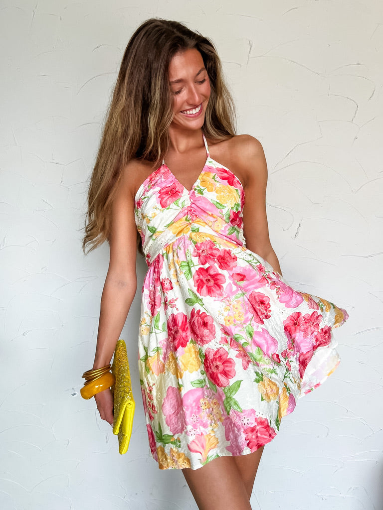 Sweet Treat Floral Self Tie Neck Dress