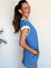 You Got Me Striped T- Shirt Dress- Ocean Blue