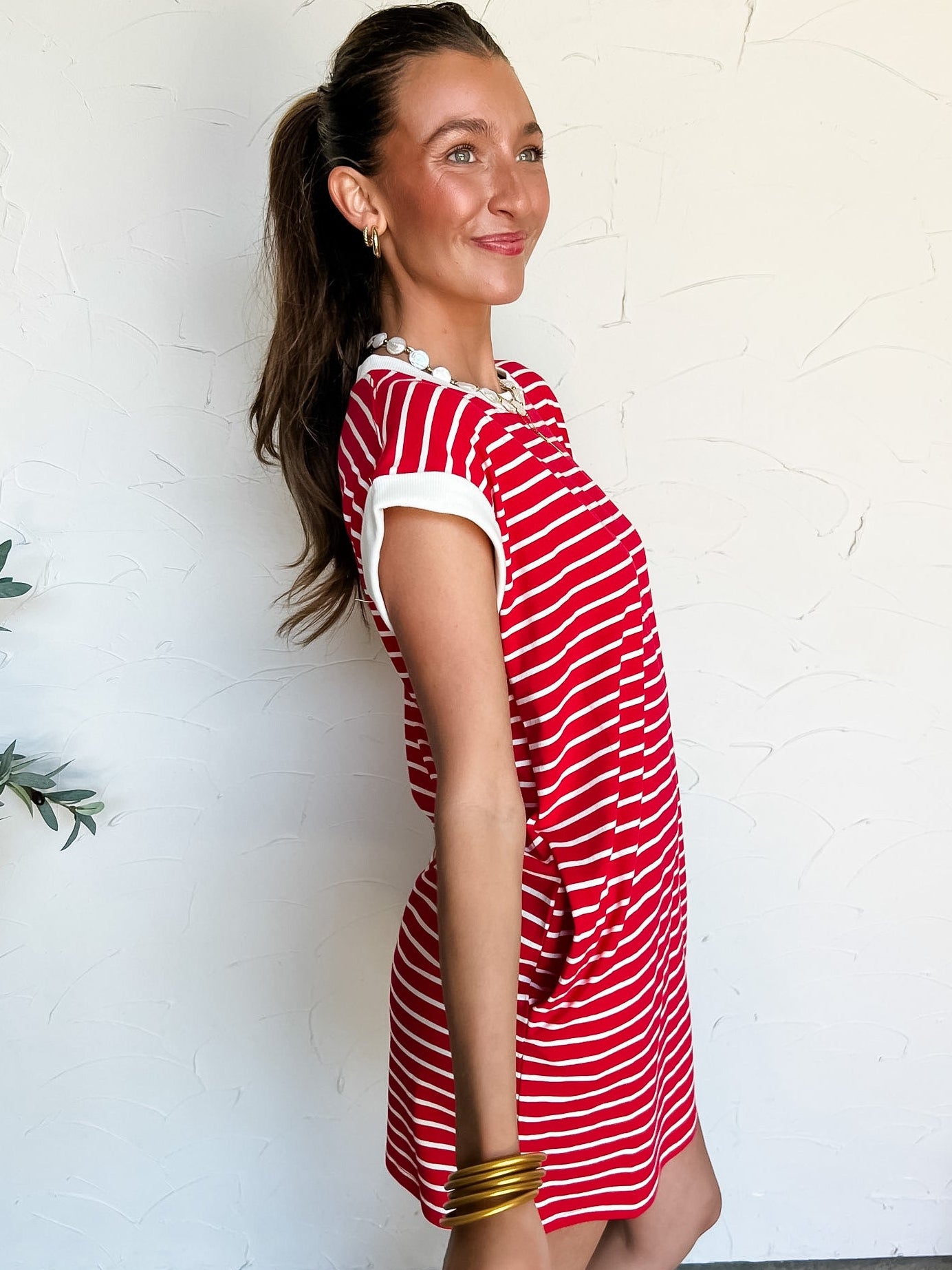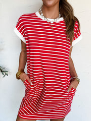 You Got Me Striped T- Shirt Dress- Ruby
