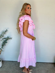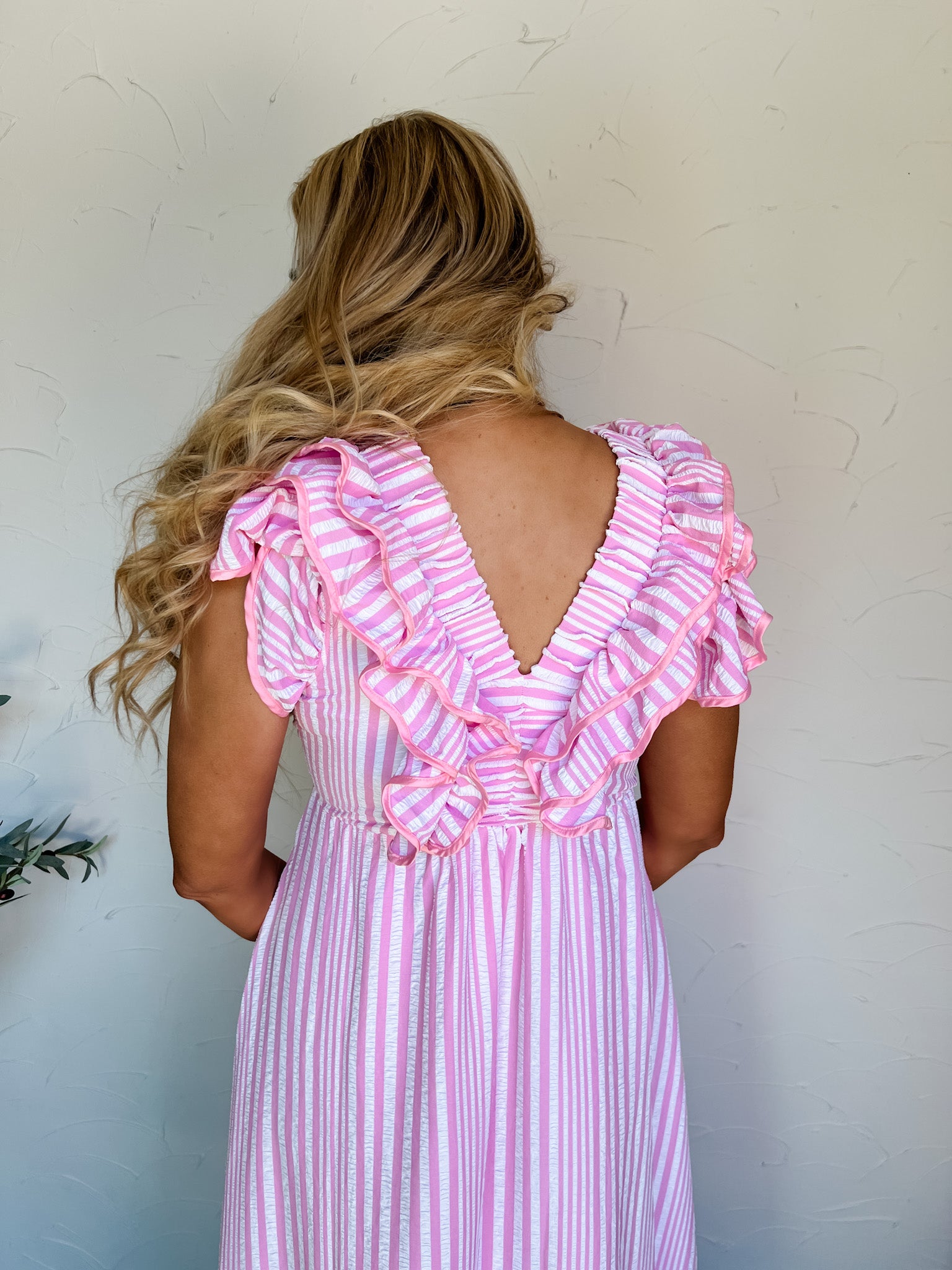 Sweet Cheeks Pink Striped Flowy A Line Midi Dress