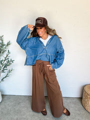 Wonder With Me Mineral Washed Long Sleeve Top- Dark Denim