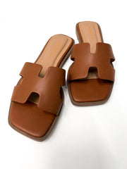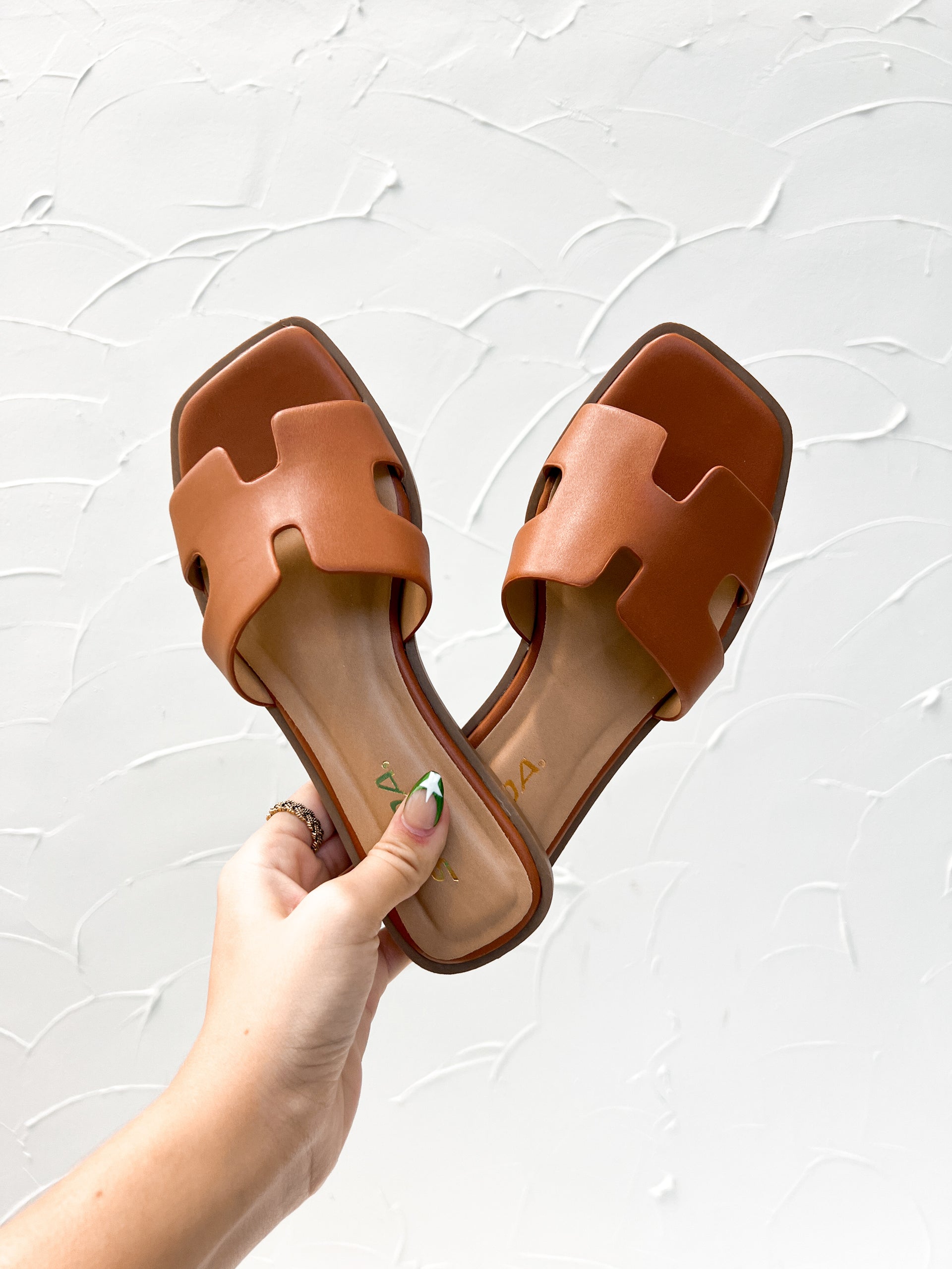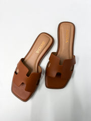These Knit Sandals in Cognac are the perfect blend of sleek and comfortable, making them a must-have for any wardrobe. Crafted with a brown hue and designed in the style of a popular luxury brand, these flats bring both style and comfort to your everyday wear.