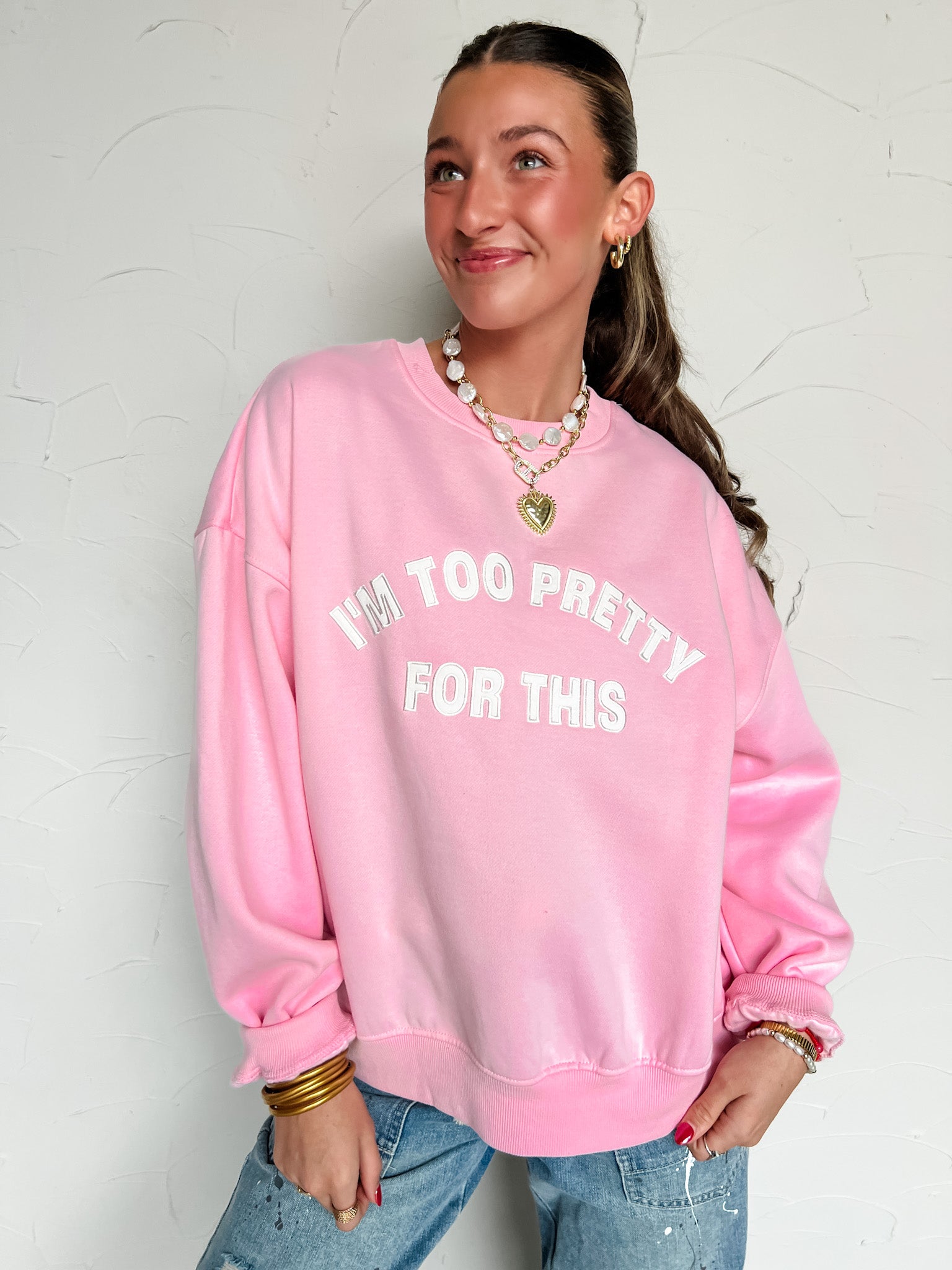 I'm Too Pretty For This Oversized Sweatshirt- Pink