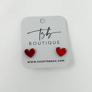 Red Mirror Heart Studs