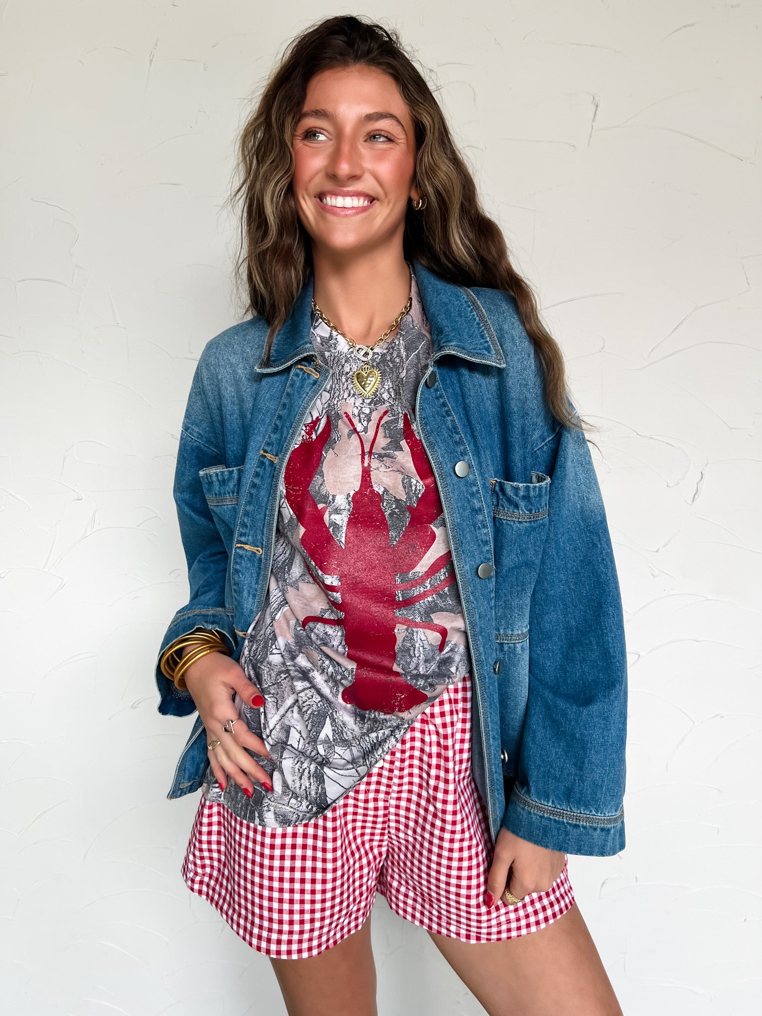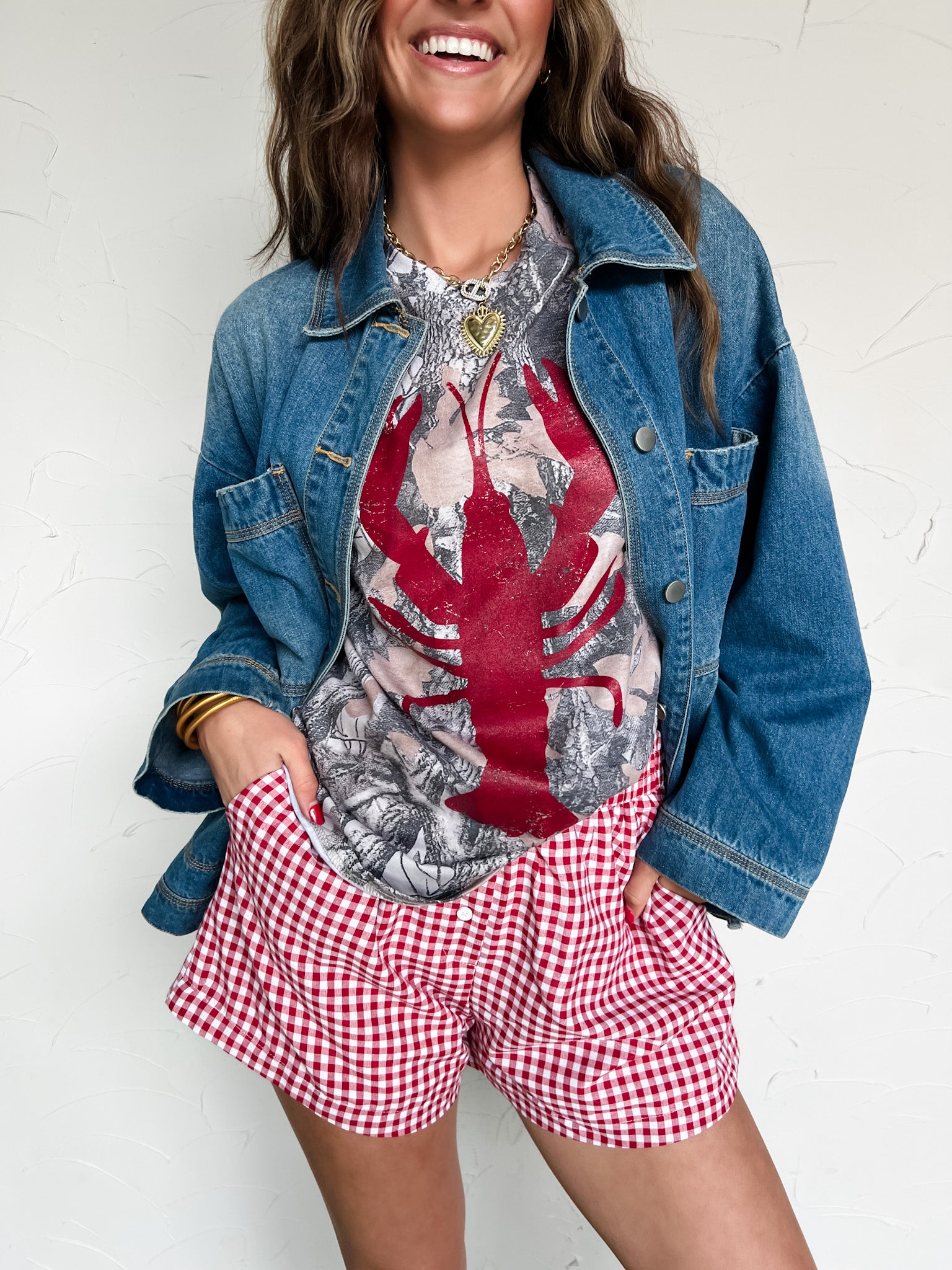 Styled With: Our It's A Must Gingham Boxer Shorts- Red