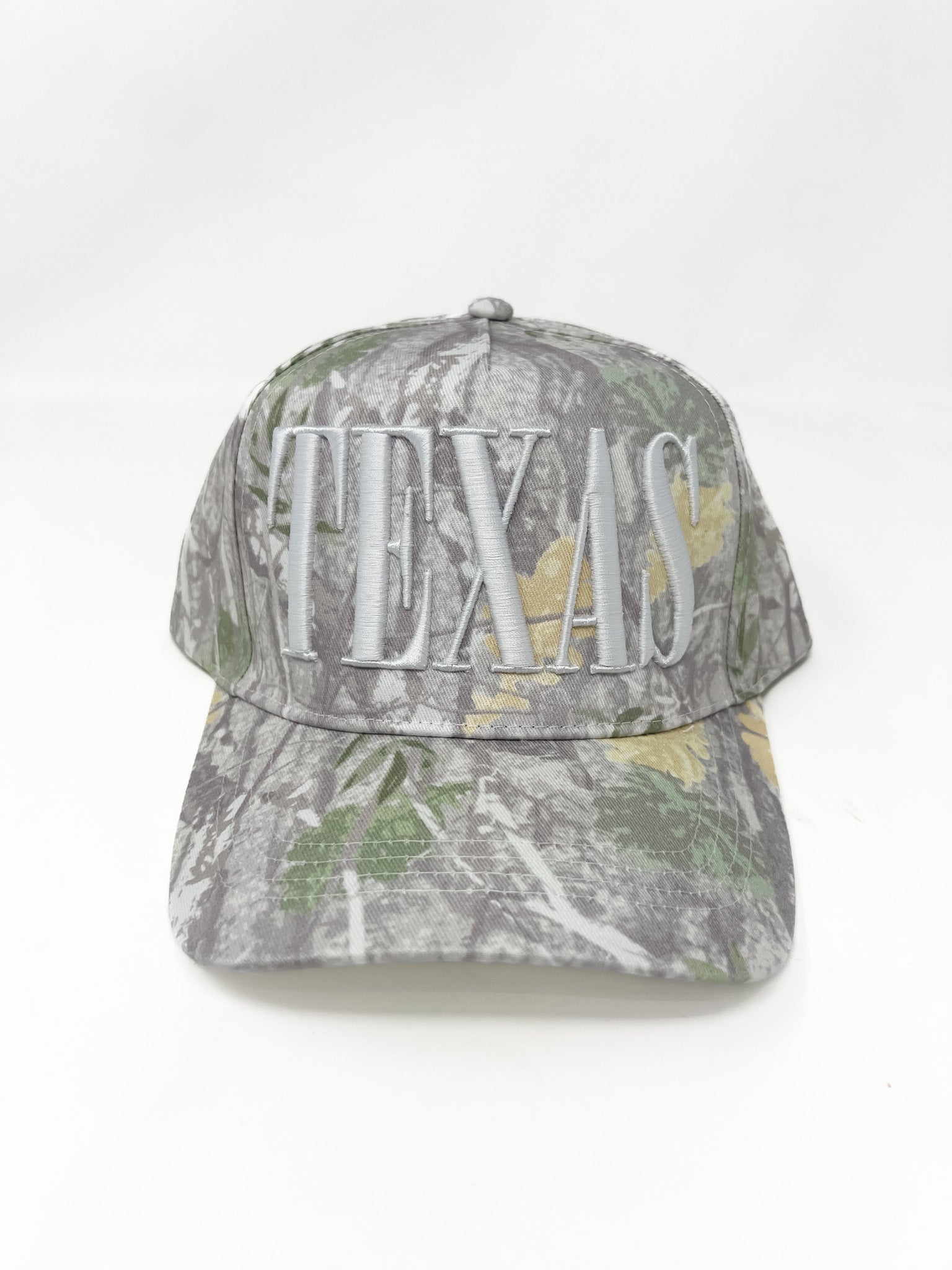 Blend in while standing out — this Texas cap rocks a full camo print with bold, raised white ‘TEXAS’ embroidery across the front. Full twill back and adjustable plastic snap closure, it’s perfect for hunting trips, tailgates, or everyday Texas pride."
