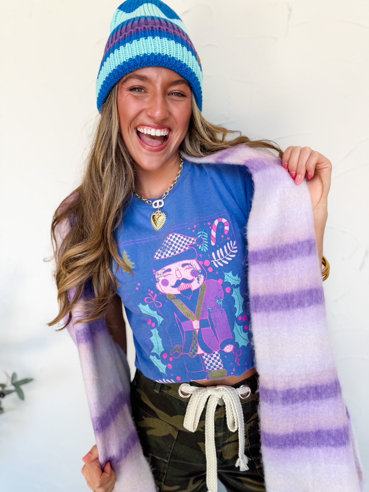 Styled With: Our Are You Ready Camo String Pants & Blue Multi Stripe Cuff Beanie