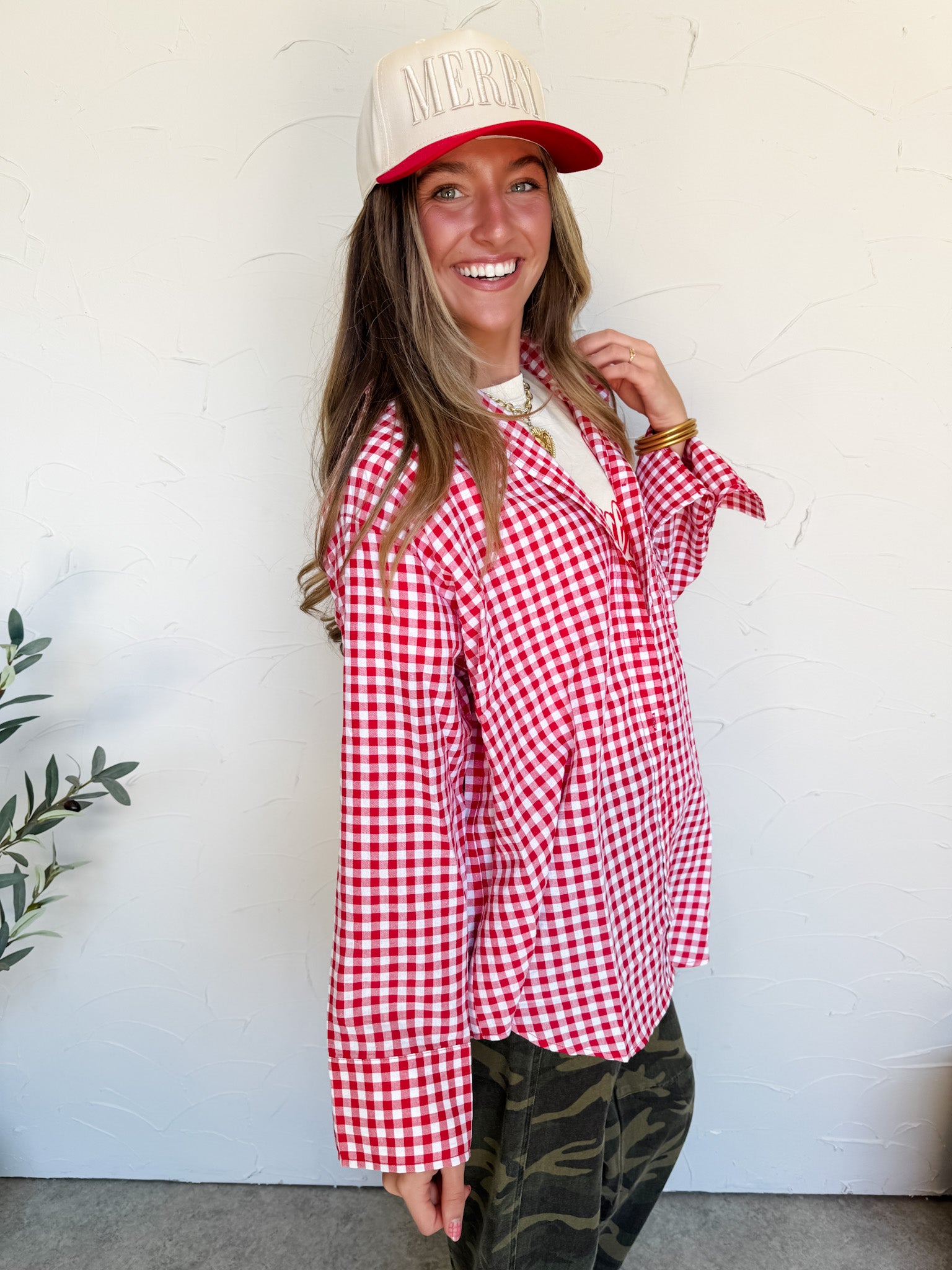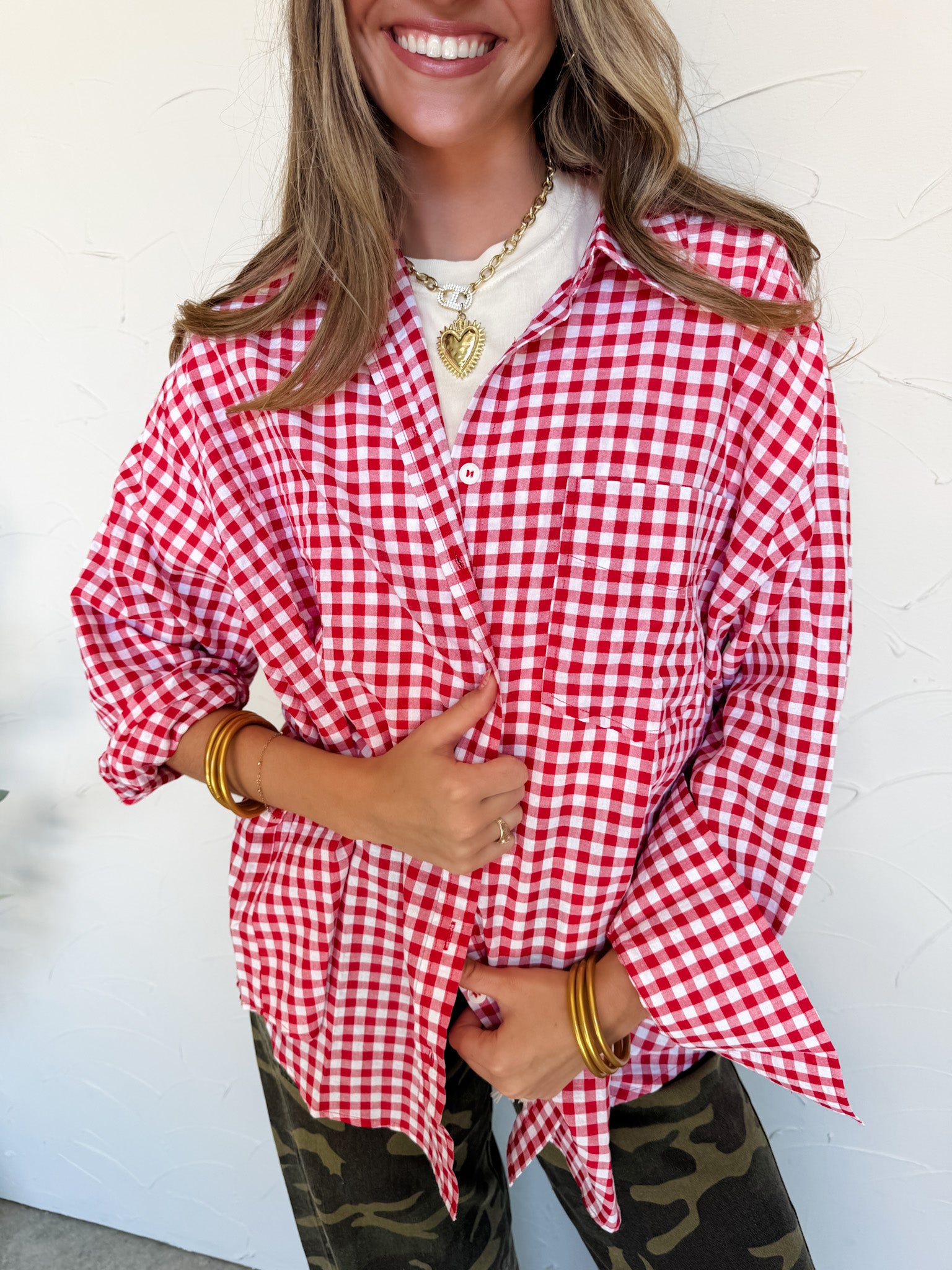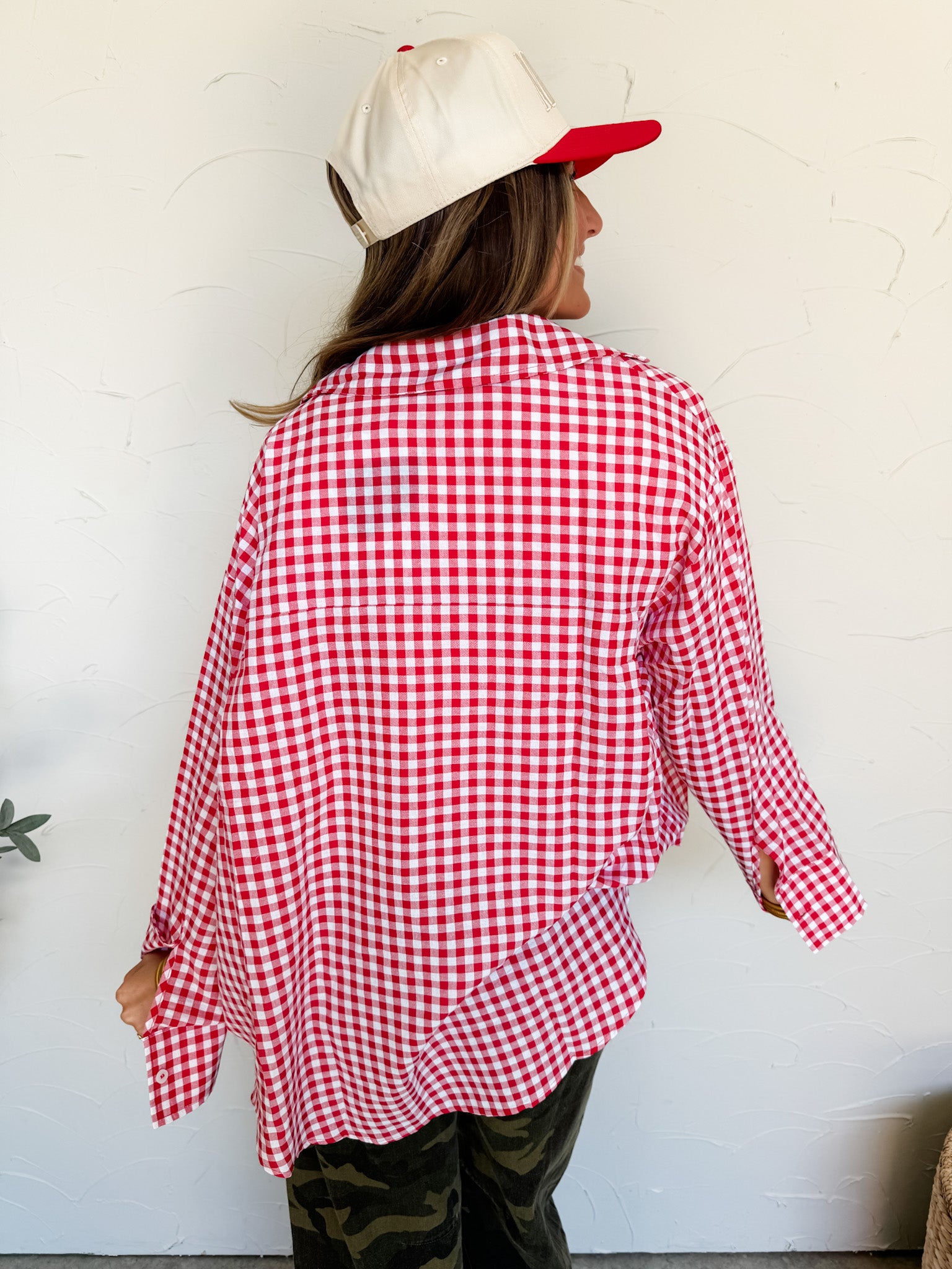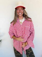 Suddenly Fine Ruby Oversized Gingham Button Down Shirt