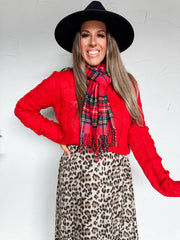 Styled With: Our Pisa Heeled Boot- Black & Elena Cashmere Plaid Scarf & Sonia Felt Hat- Black & Wild Mood Leopard Maxi Skirt