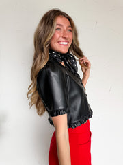 Truly Exceptional Ruffled Black Leather Top