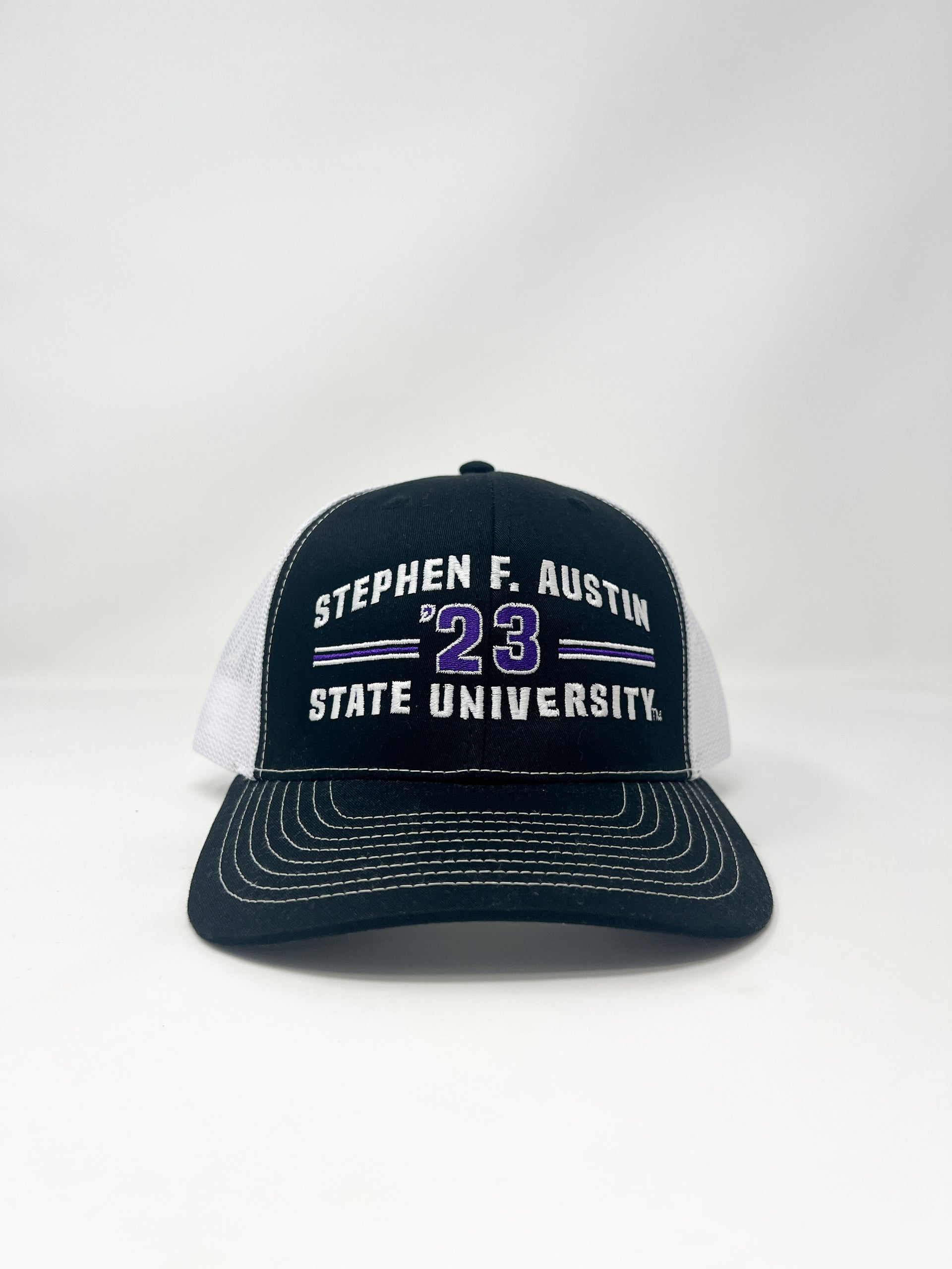 SFA PRIDE! This cap features stitching details + adjustable snap back + embroidery detail + mesh backing! Top off your look with this fun spirit hat and rock it all summer long!