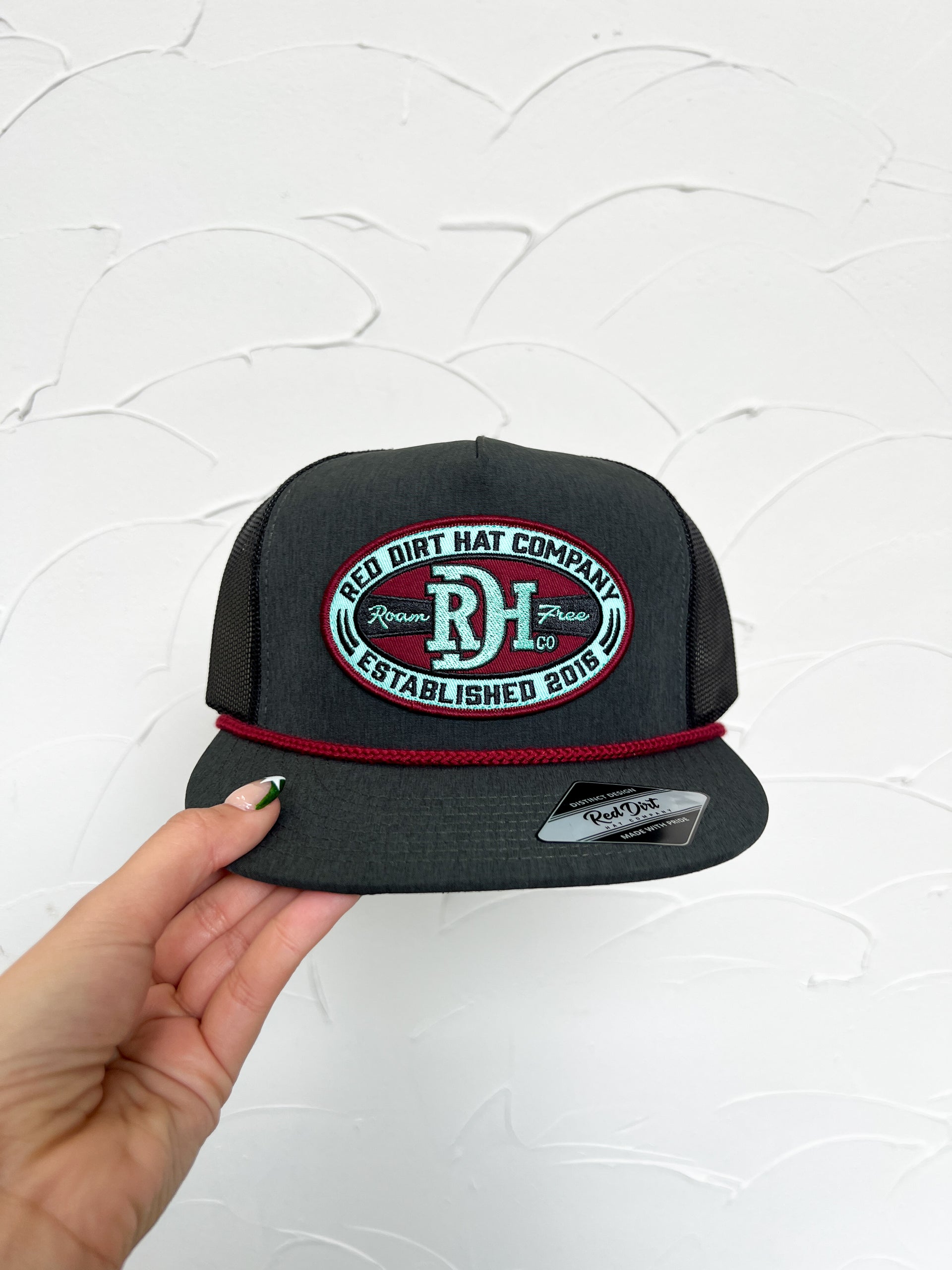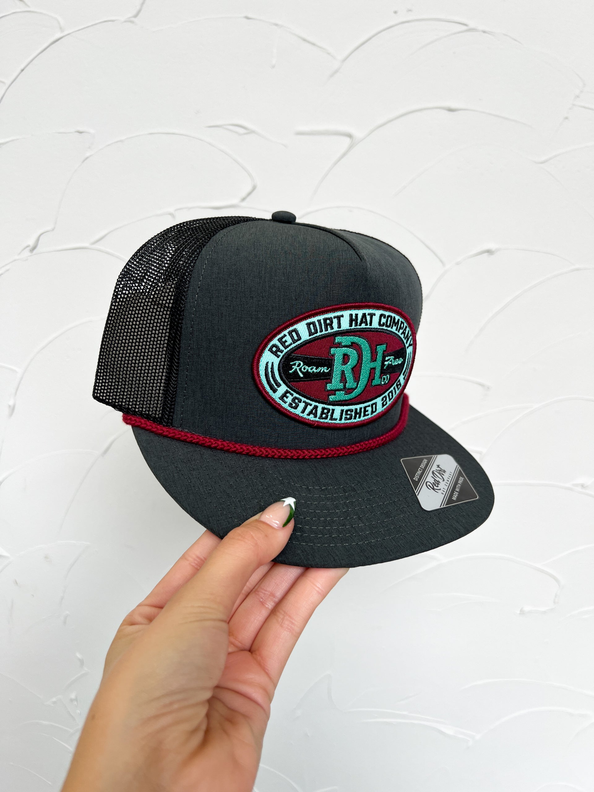 Muscadine Hat- Black/Black/Burgundy Rope