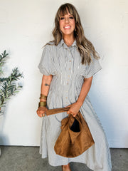 Best Thing In Life Rayon Striped Button Up Top- Taupe
