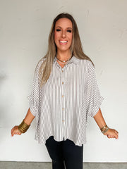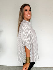 Best Thing In Life Rayon Striped Button Up Top- Brown