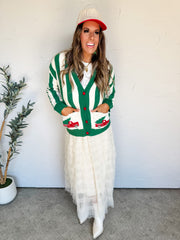 Christmas Truck Embroidered Pocket Stripe Cardigan