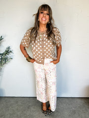 Full Of Life Polka Dot Button Down Cardigan- Taupe