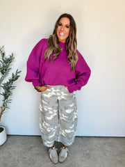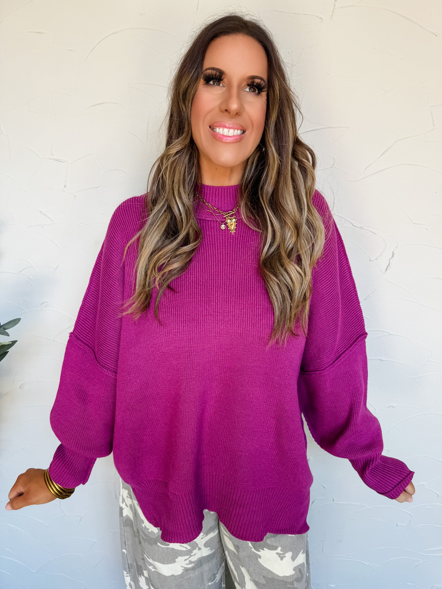 Give It A Try Side Slit Oversized Sweater- Lt Plum