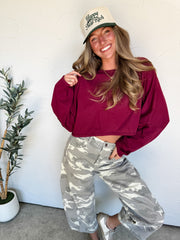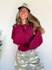 Give Me A Score Elastic Waist Top- Burgundy