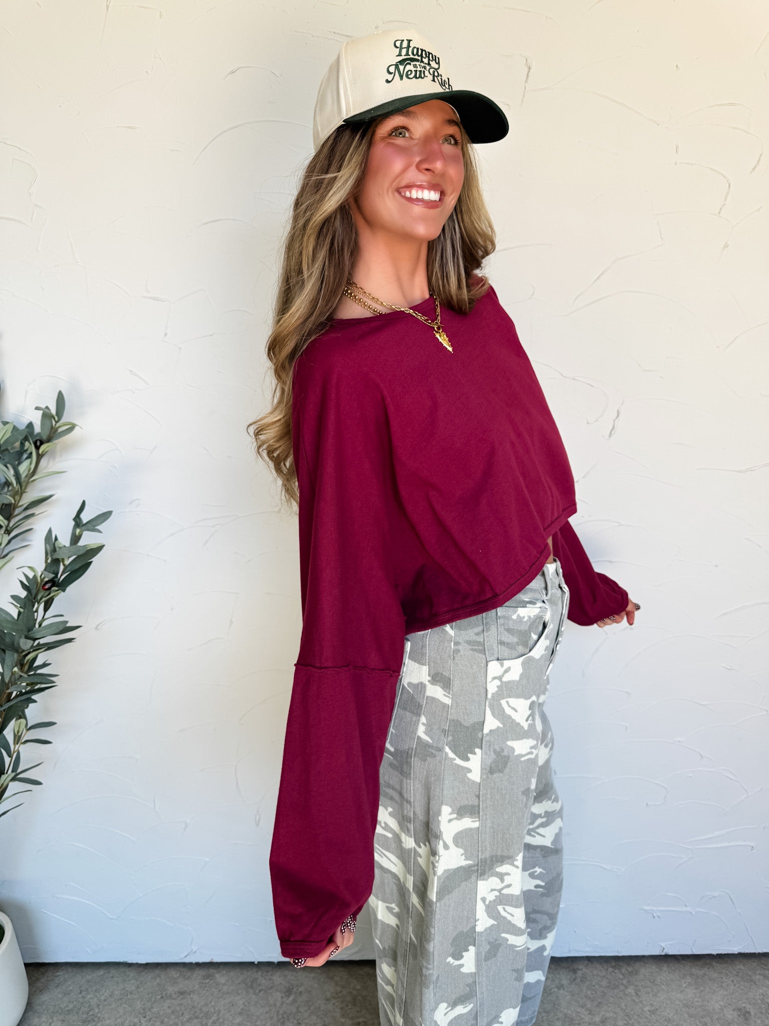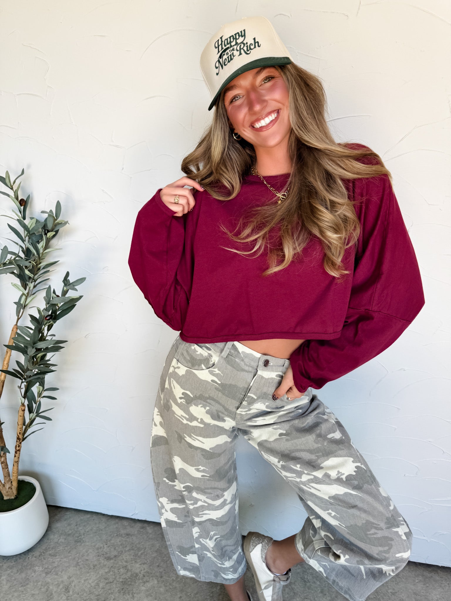 Styled With: Our Stay In Sight Camo Denim Pants & Happy Is The New Rich Hat