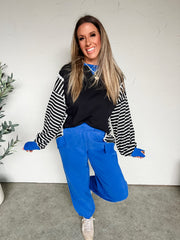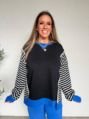 In No Hurry Oversized Striped Casual Knit Top- Black
