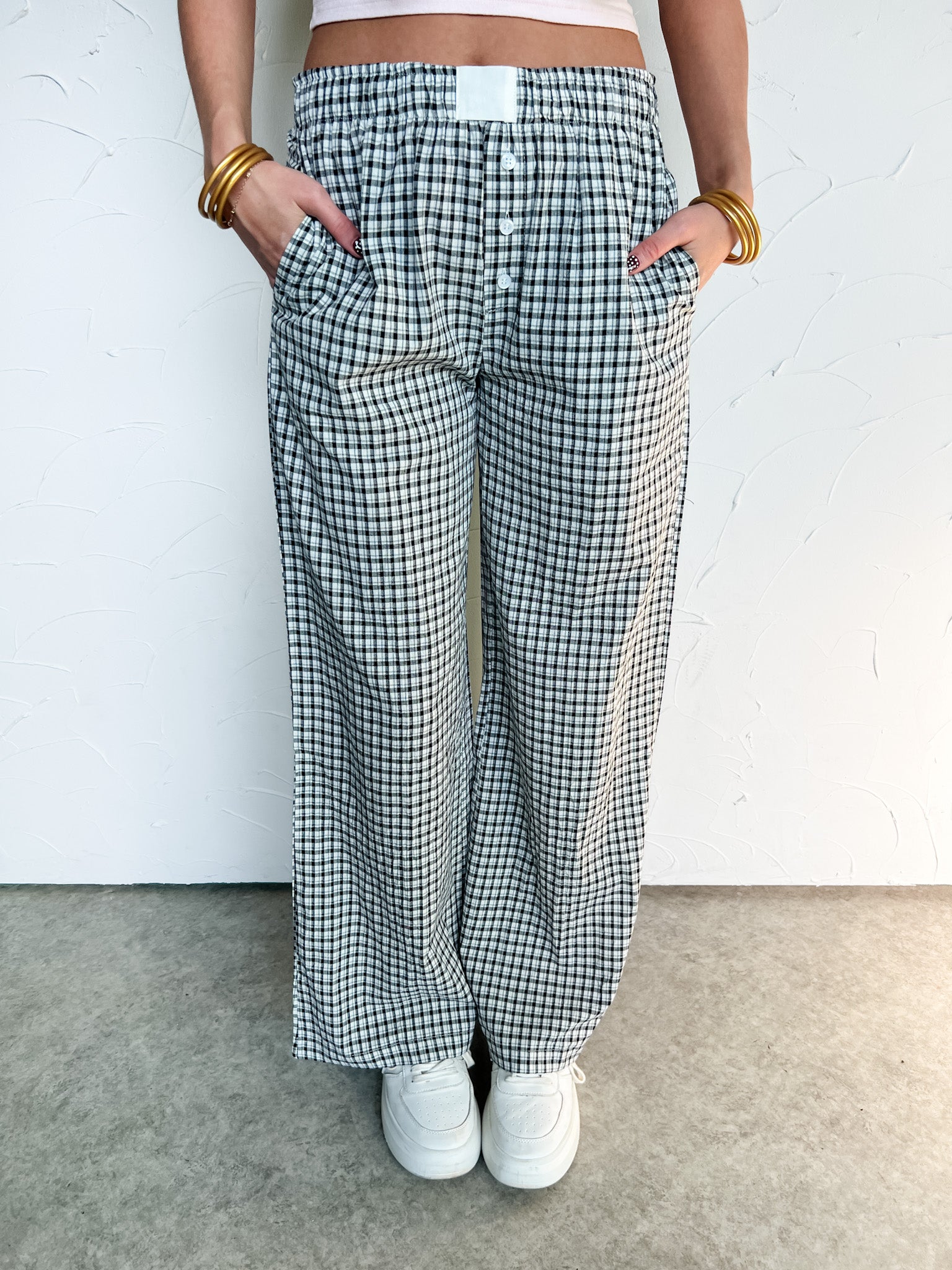My Day One Black Mid Rise Gingham Pants
