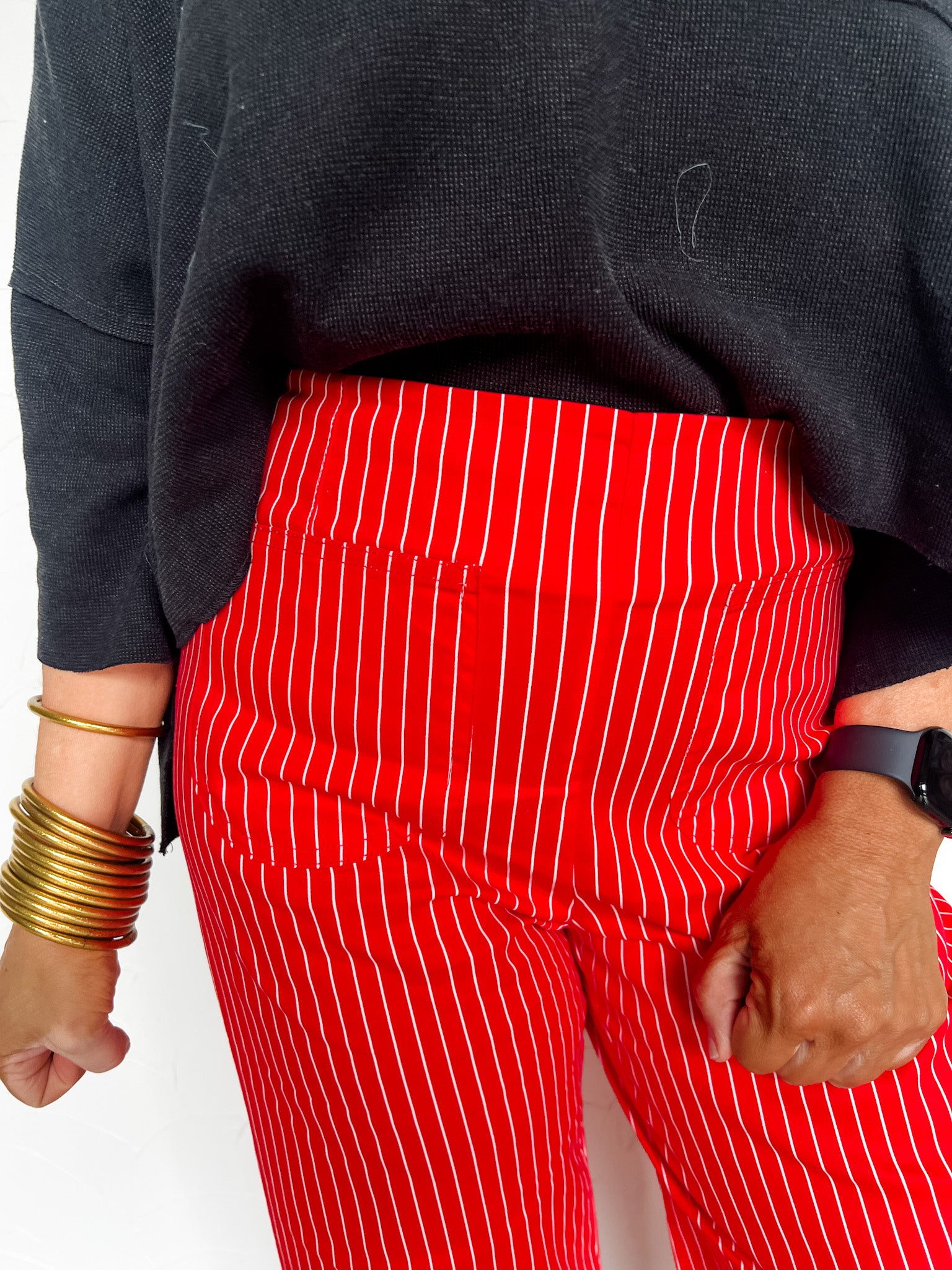 My Sweet Side Straight Leg Striped Pants- Cherry Red