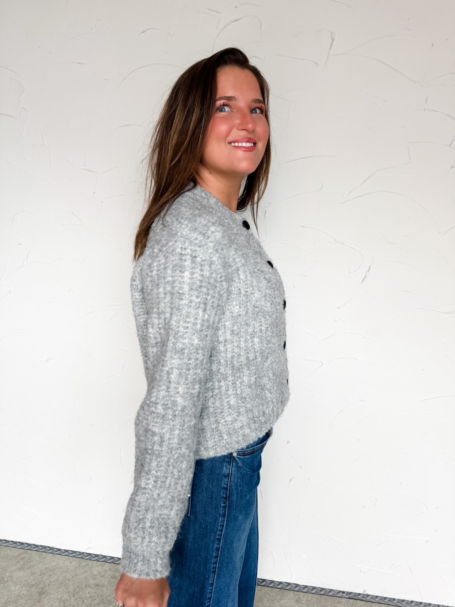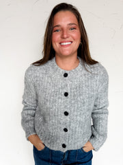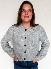 No Secrets Here Knit Button Down Grey Cardigan